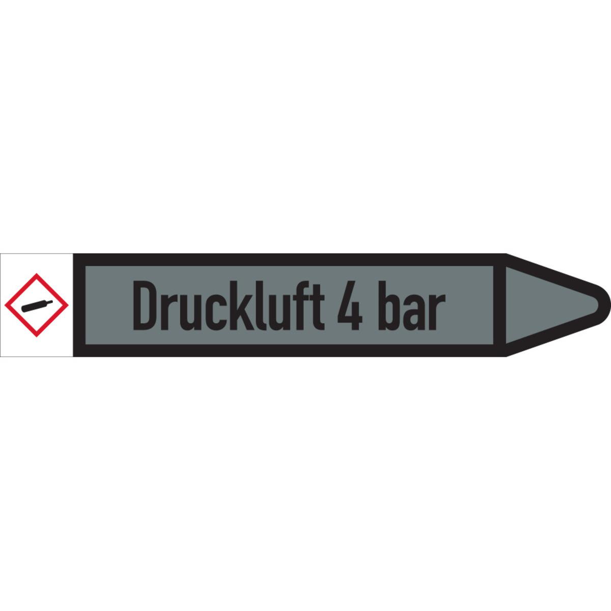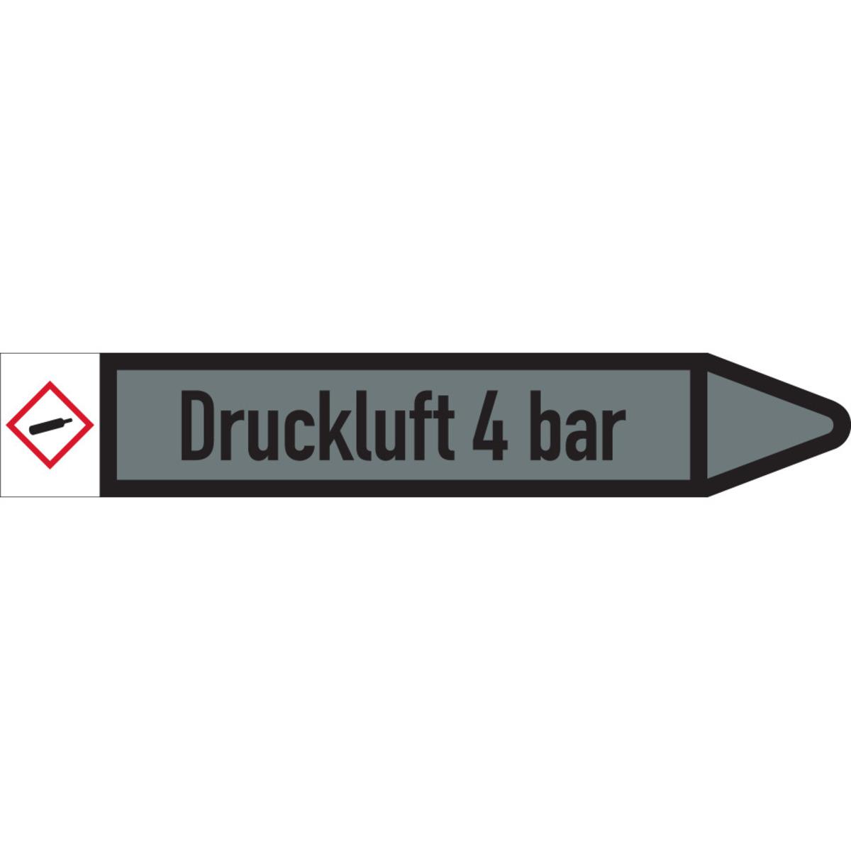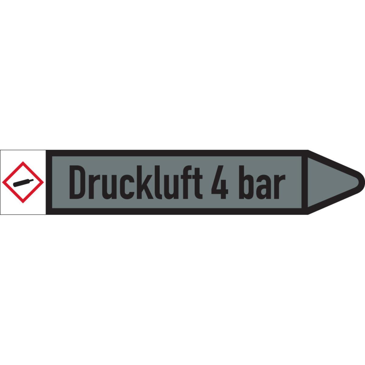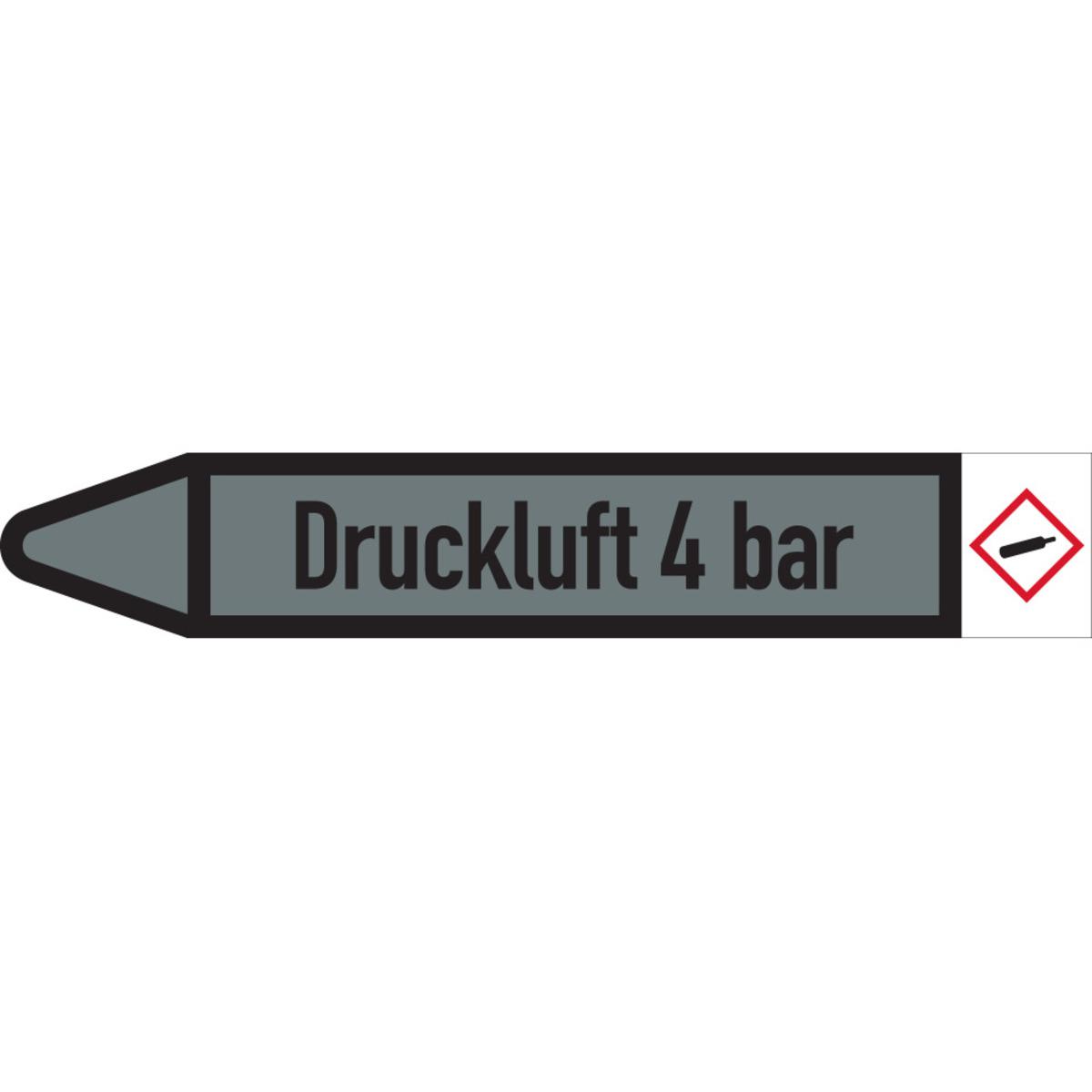 Auswahl: RKZ-Etikett Druckluft 4bar, links, DIN, grau/schwarz, Ø 60-90mm, 310x52mm, 3/Bogen