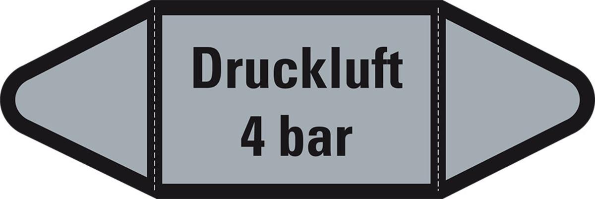 Auswahl: Rohrleitungsetikett Druckluft 4 bar, grau/schwarz, für Ø 15-25mm, 96x17mm, 8/Bogen