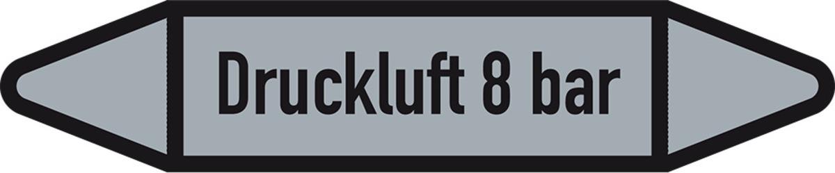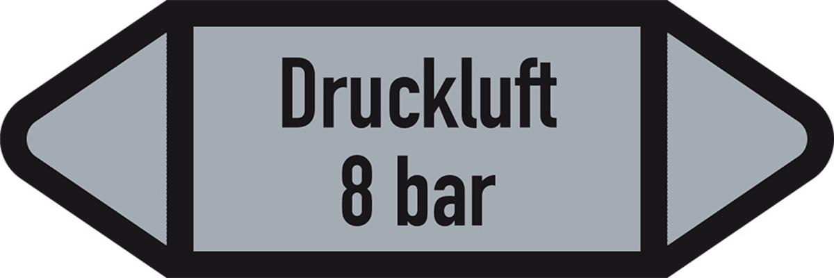 Auswahl: Rohrleit.etikett Druckluft 8bar, DIN 2403, grau/schwarz, Ø15-25mm, 96x17mm, 8/Bogen