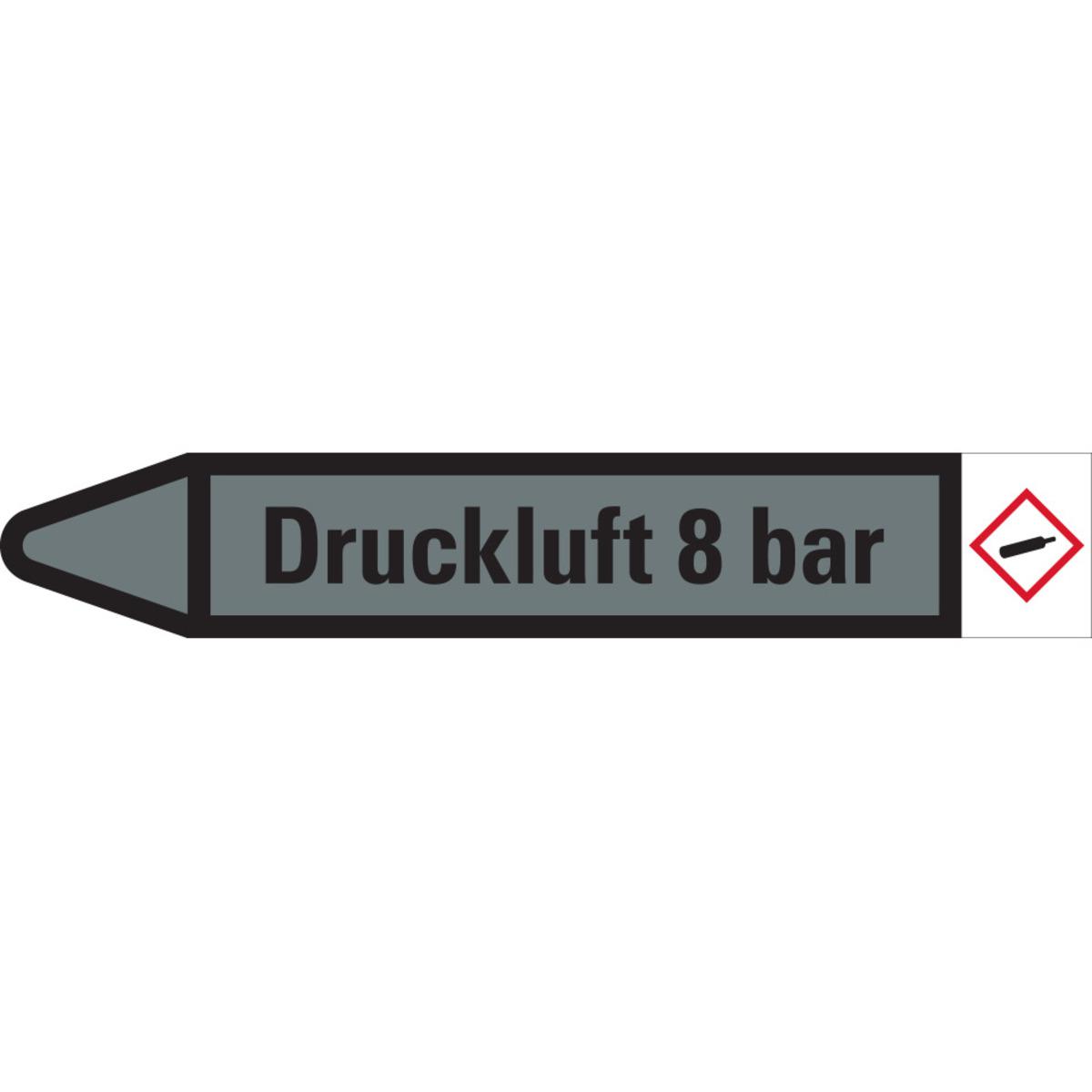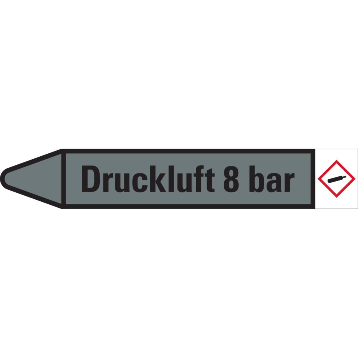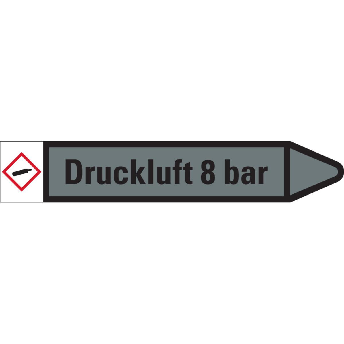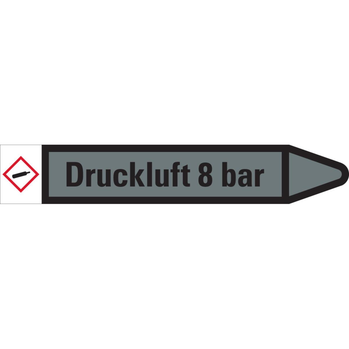 Auswahl: RKZ-Etikett Druckluft 8 bar, rechts, grau/schwarz, für Ø 15-25mm, 96x17mm, 8/Bogen