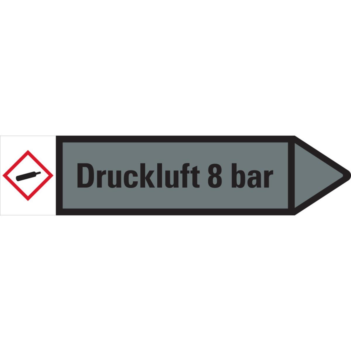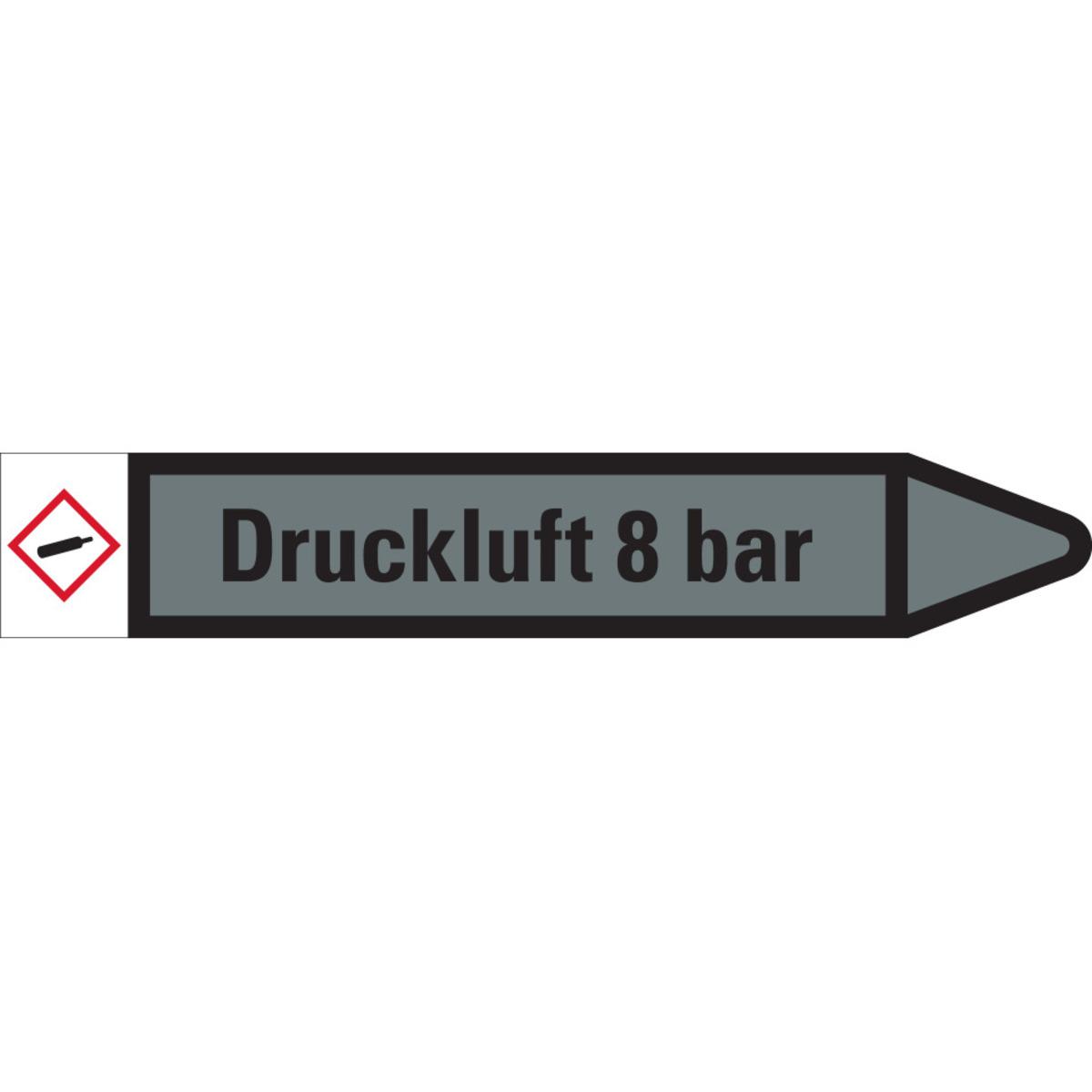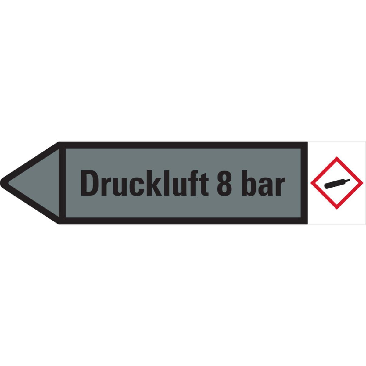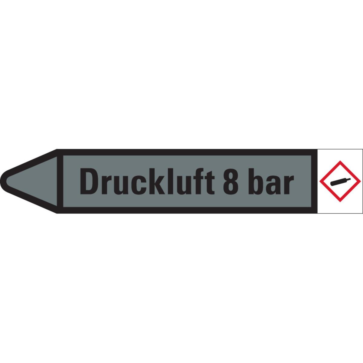 Auswahl: RKZ-Etikett Druckluft 8 bar, rechts, grau/schwarz, für Ø 15-25mm, 96x17mm, 8/Bogen