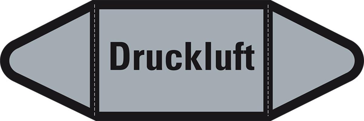 Auswahl: Rohrleitungsetikett Druckluft, grau/schwarz, für Ø 15-25mm, 96x17mm, 8/Bogen