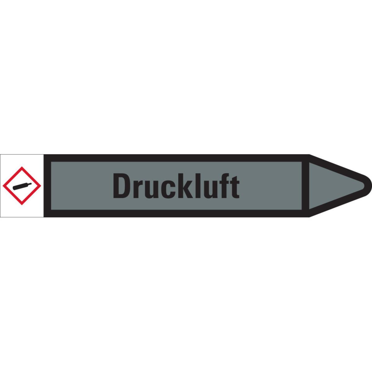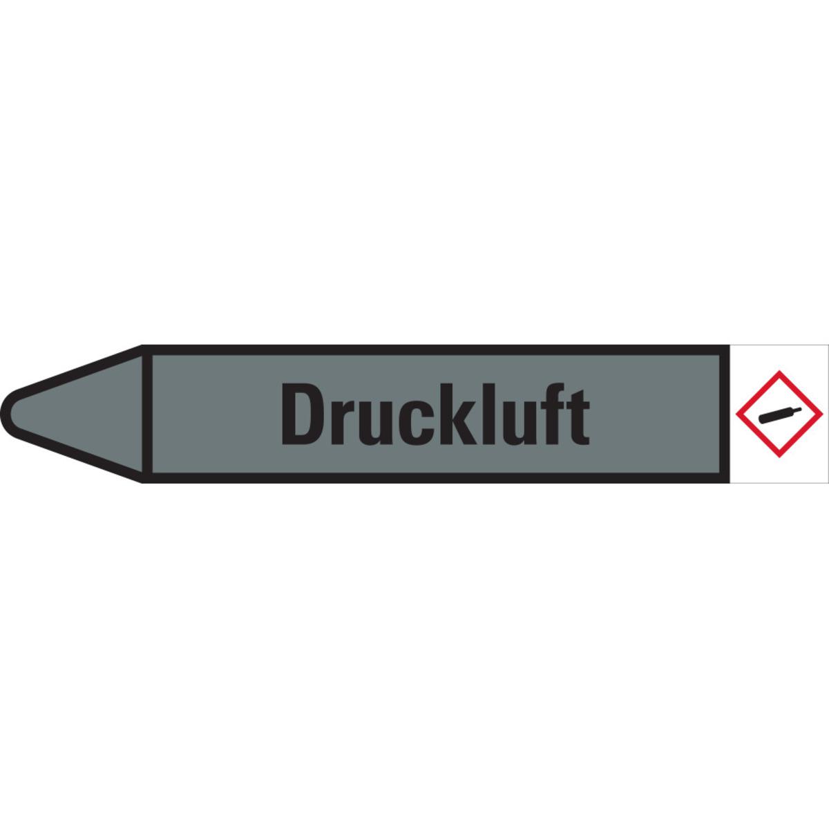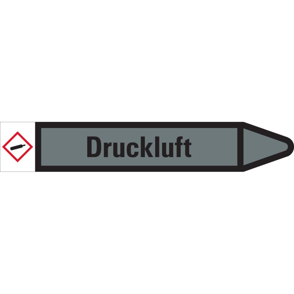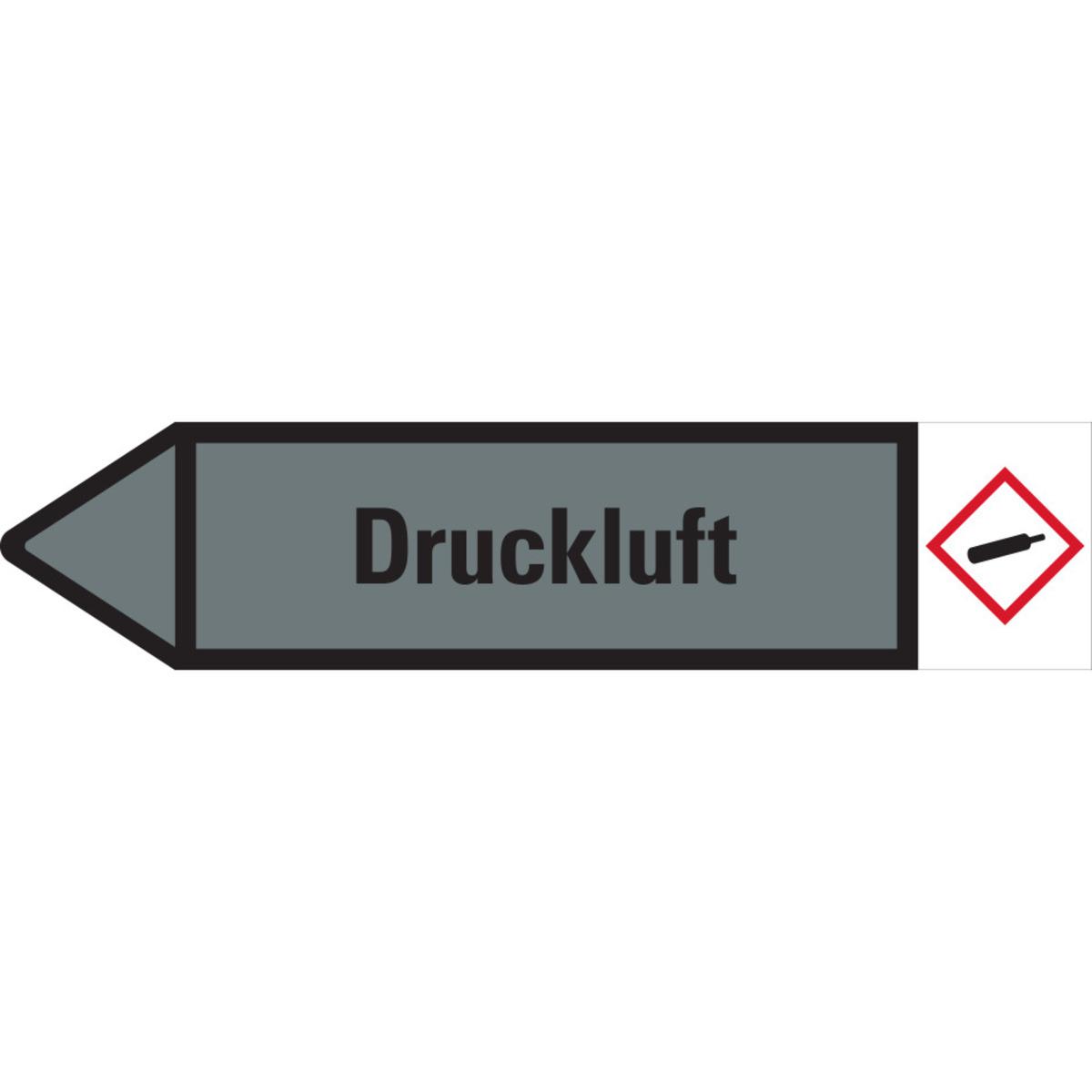 Auswahl: RKZ-Etikett Druckluft, links, grau/schwarz, für Ø 15-25mm, 96x17mm, 8/Bogen