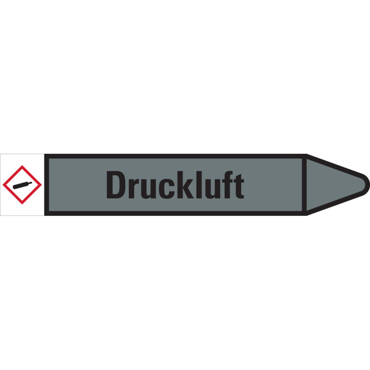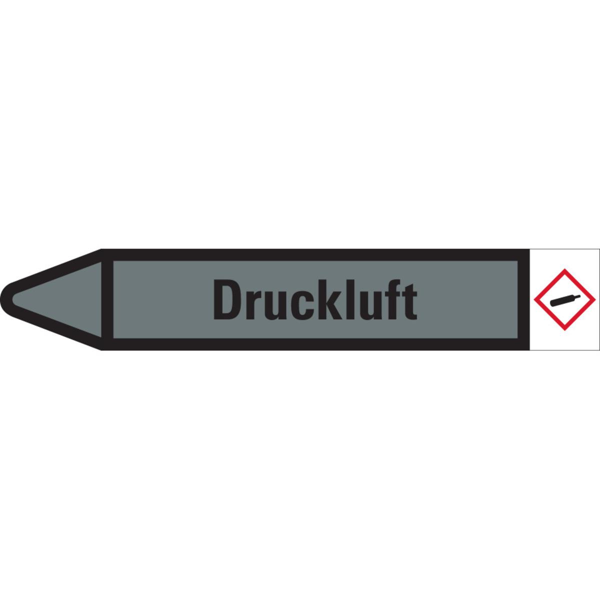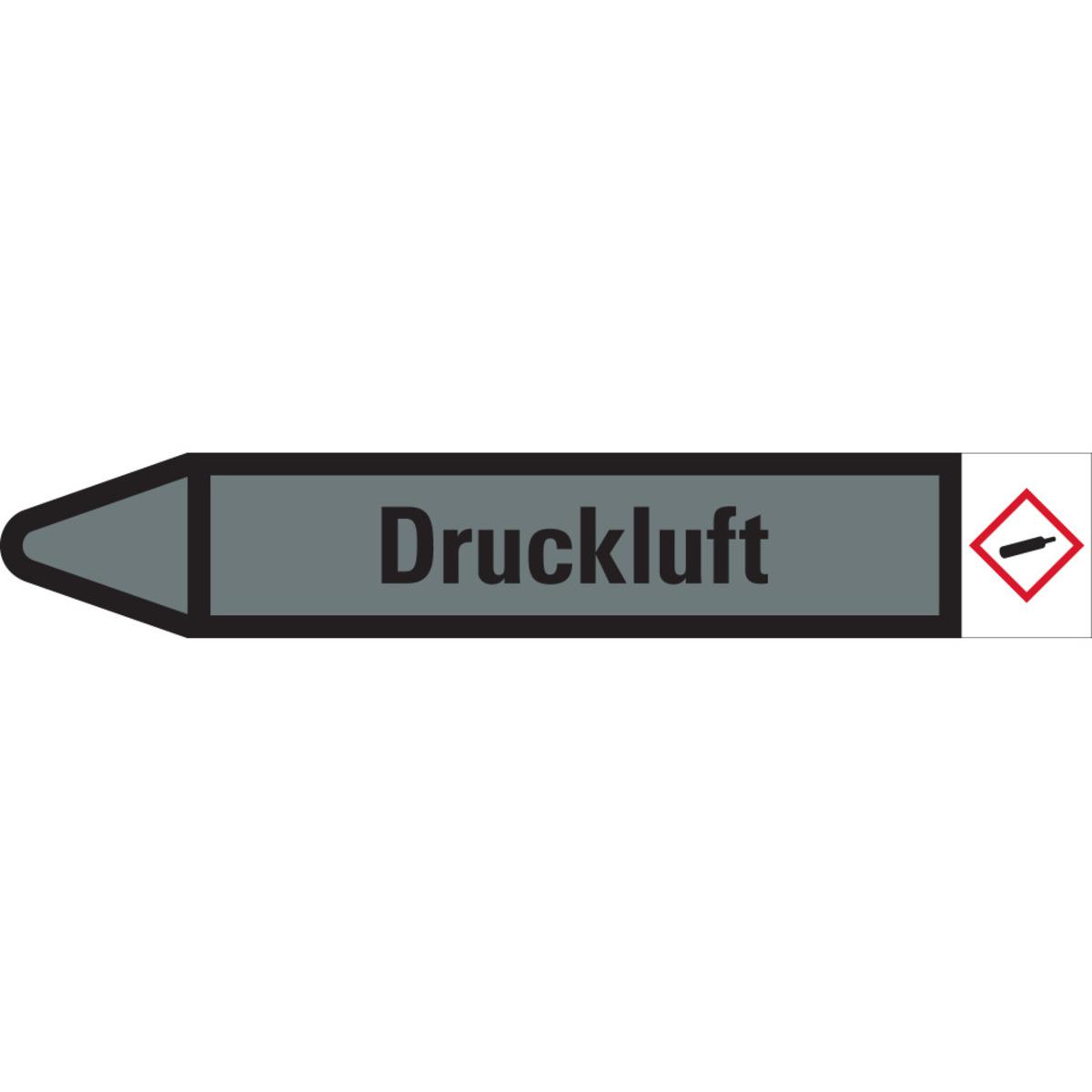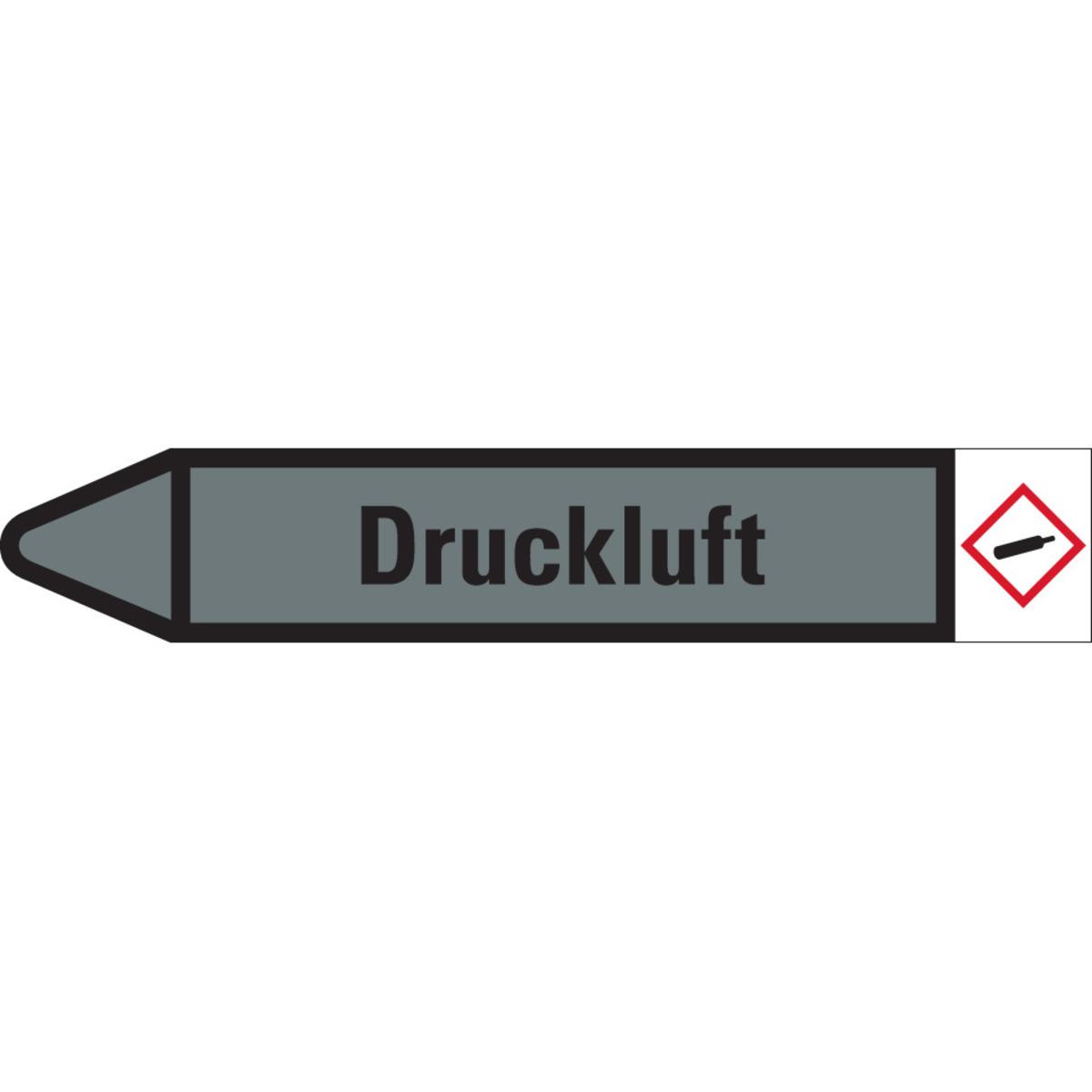Auswahl: RKZ-Etikett Druckluft, links, grau/schwarz, für Ø 15-25mm, 96x17mm, 8/Bogen