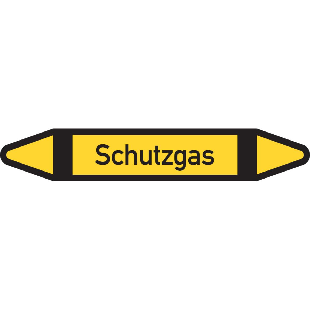 Auswahl: RKZ-Etikett Schutzgas, DIN 2403, gelb/schwarz/schwarz, Ø60-90mm, 310x52mm, 3/Bogen
