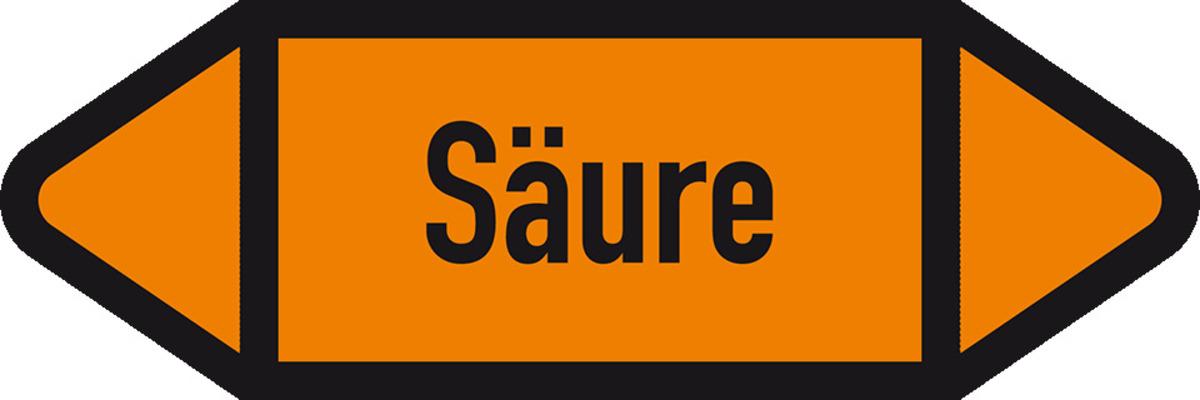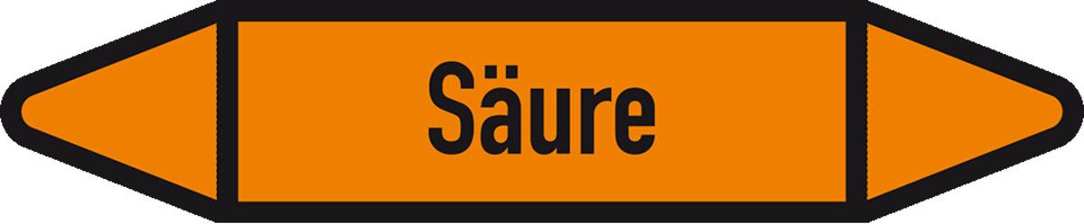 Auswahl: Rohrleitungsetikett Säure, DIN 2403, orange/schwarz, für Ø 40-60mm, 218x37mm, 5/Bogen