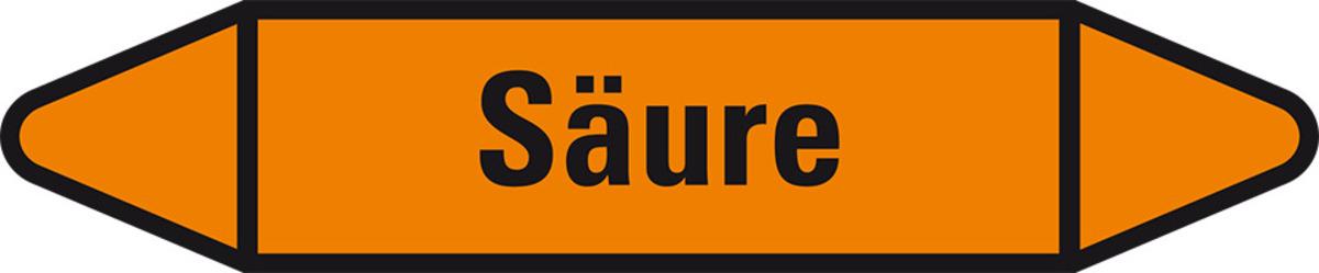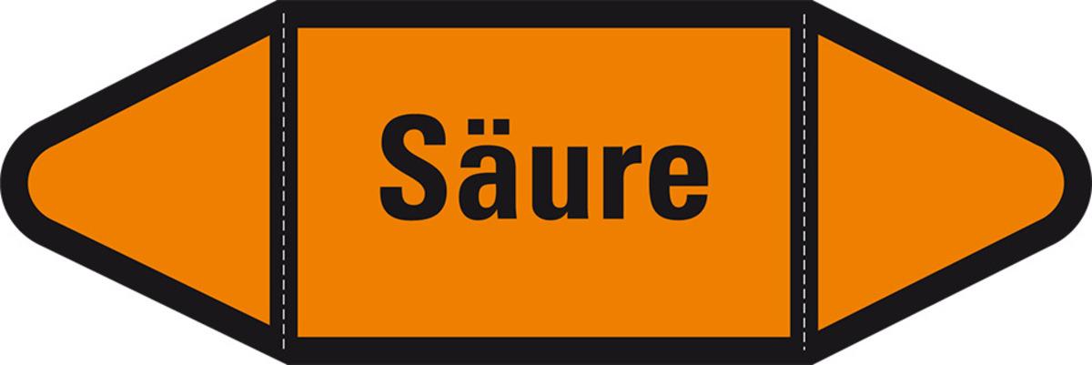 Auswahl: Rohrleitungsetikett Säure, orange/schwarz, für Ø 40-60mm, 218x37mm, 5/Bogen