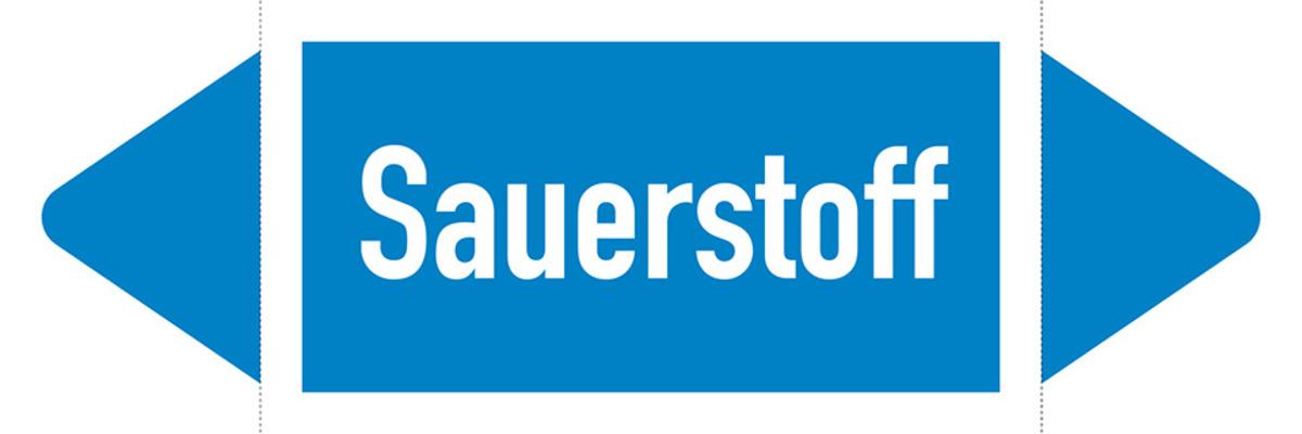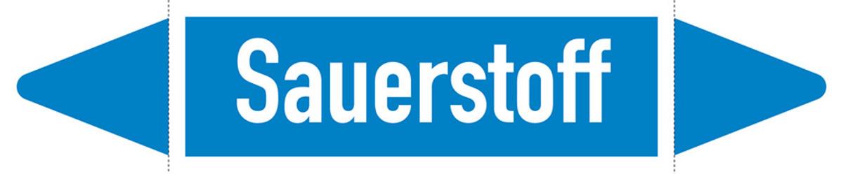 Auswahl: Rohrleit.etikett Sauerstoff, DIN 2403, blau/weiß, für Ø 25-40mm, 154x26mm, 5/Bogen