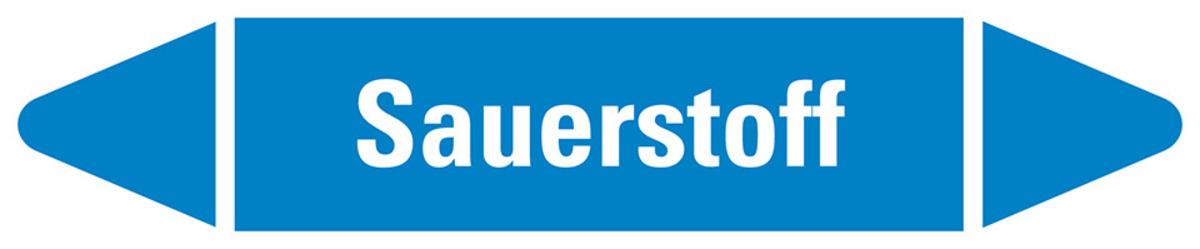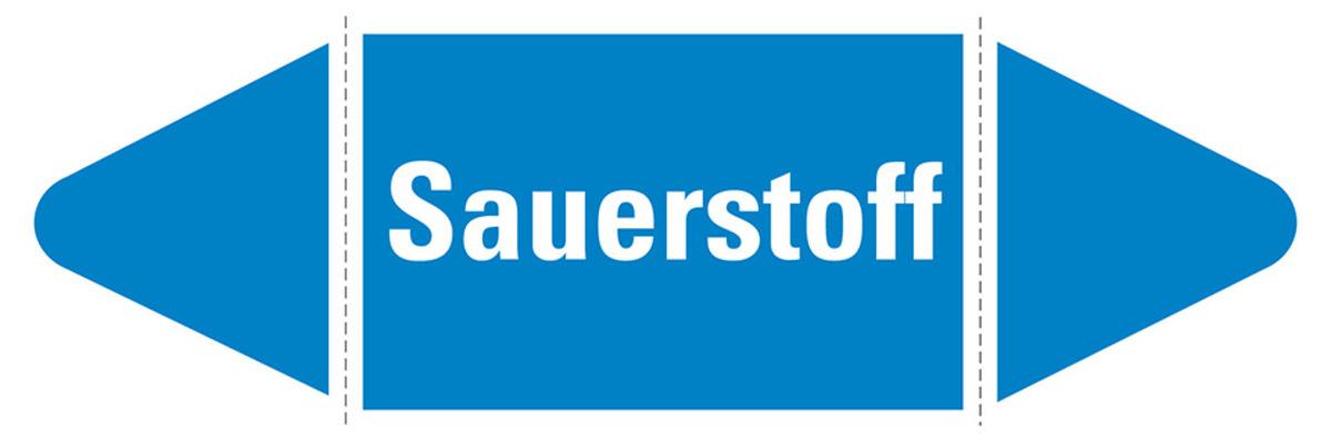 Auswahl: Rohrleitungsetikett Sauerstoff, blau/weiß, für Ø 60-90mm, 310x52mm, 3/Bogen