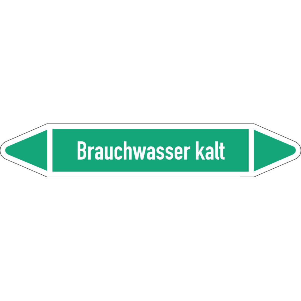 Auswahl: RKZ-Etikett Brauchwasser kalt, DIN 2403, grün/weiß, ab Ø 90mm, 440x100mm, 2/Bogen