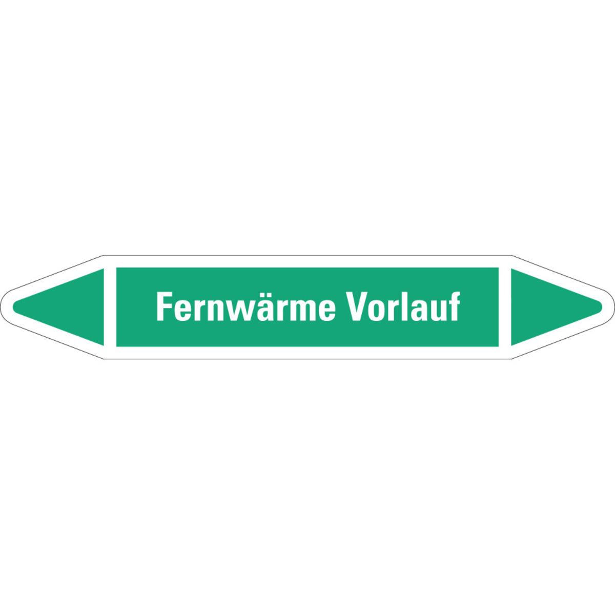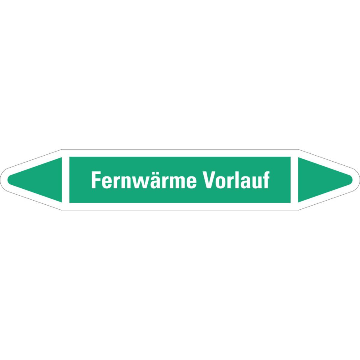 Auswahl: RKZ-Etikett Fernwärme Vorlauf, grün/weiß, für Ø 40-60mm, 218x37mm, 5/Bogen