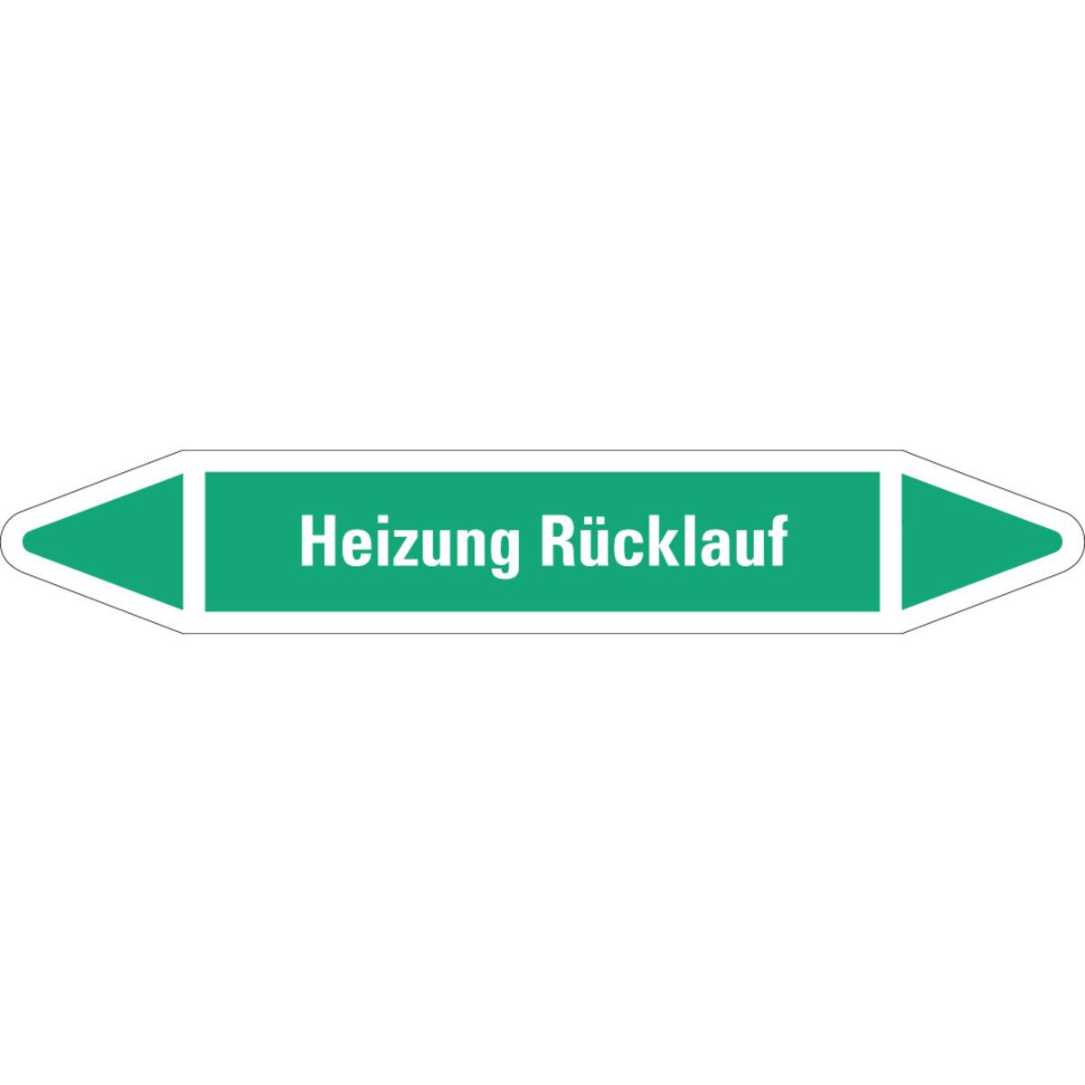 Auswahl: RKZ-Etikett Heizung Rücklauf, grün/weiß, für Ø 60-90mm, 310x52mm, 3/Bogen