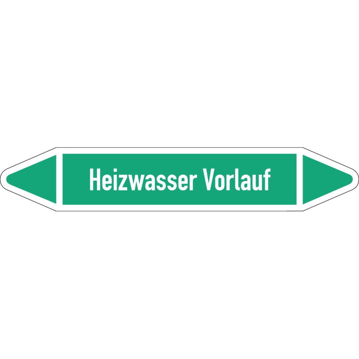 Auswahl: RKZ-Etikett Heizwasser Vorlauf, DIN 2403, grün/weiß, für Ø 15-25mm, 96x17mm, 8/Bogen