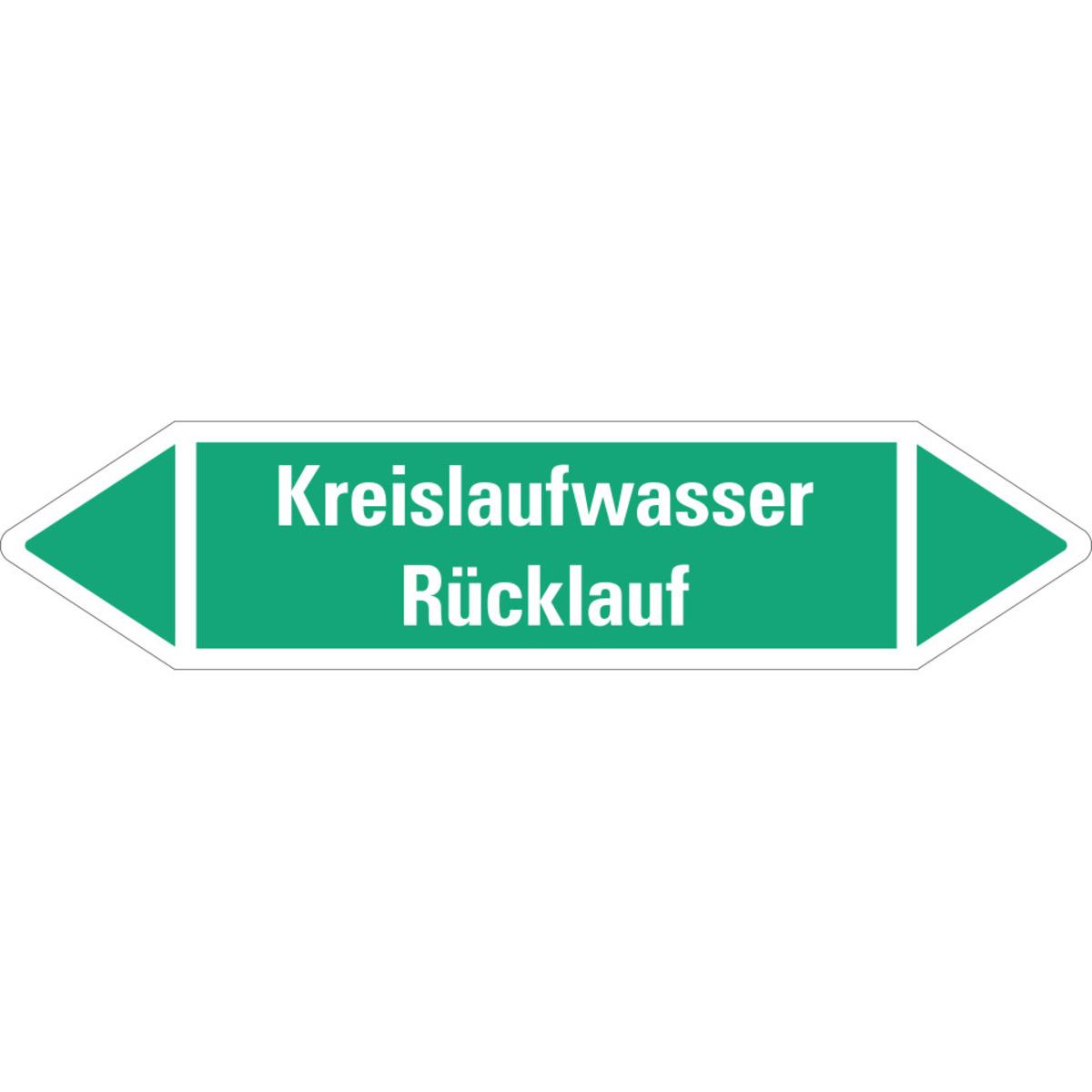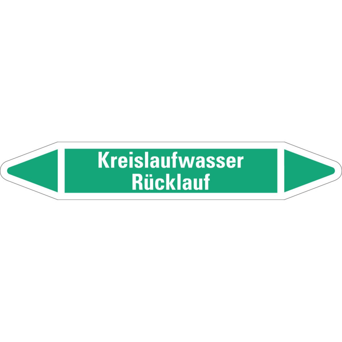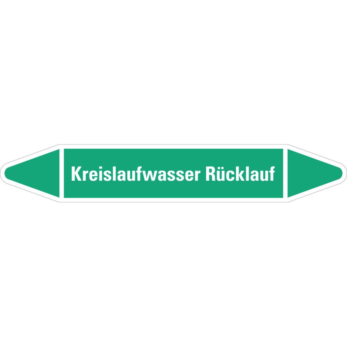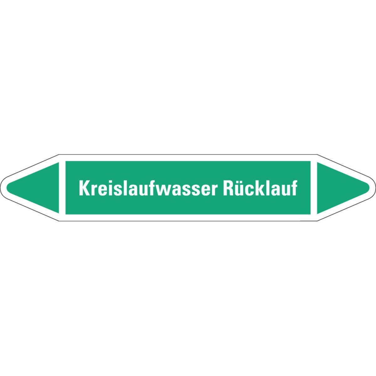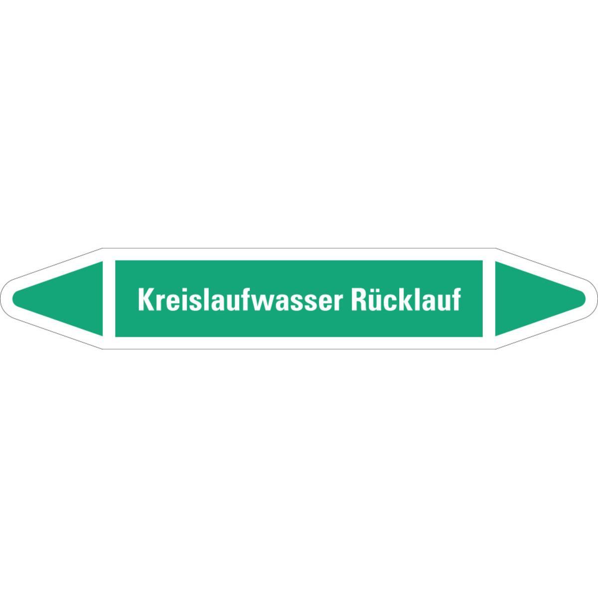 Auswahl: RKZ-Etikett Kreislaufwasser Rücklauf, grün/weiß, für Ø 25-40mm, 154x26mm, 5/Bogen