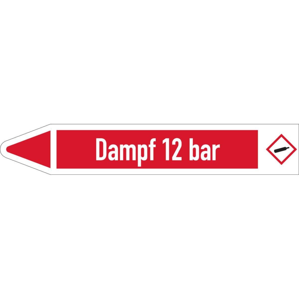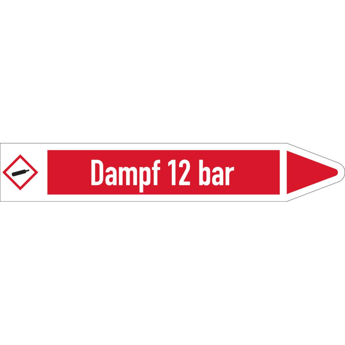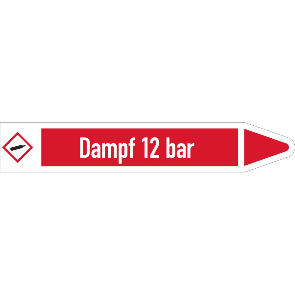 Auswahl: RKZ-Etikett Dampf 12 bar, rechts, DIN, rot/weiß, ab 90mm Ø, 440x100mm, 2/Bogen