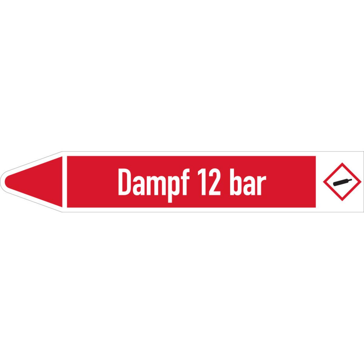 KSIGN Rohrleitungs-Einzeletikett Wasserdampf Dampf 12 bar DIN 2403