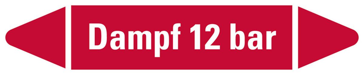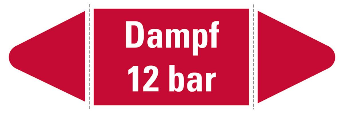 Auswahl: Rohrleitungsetikett Dampf 12 bar, rot/weiß, für Ø 25-40mm, 154x26mm, 5/Bogen