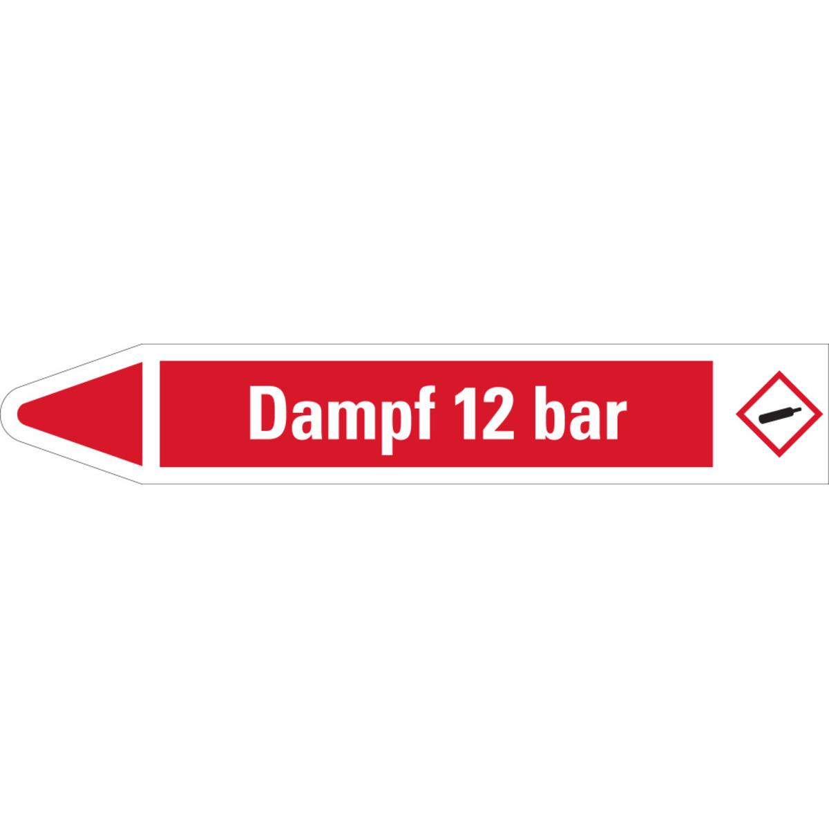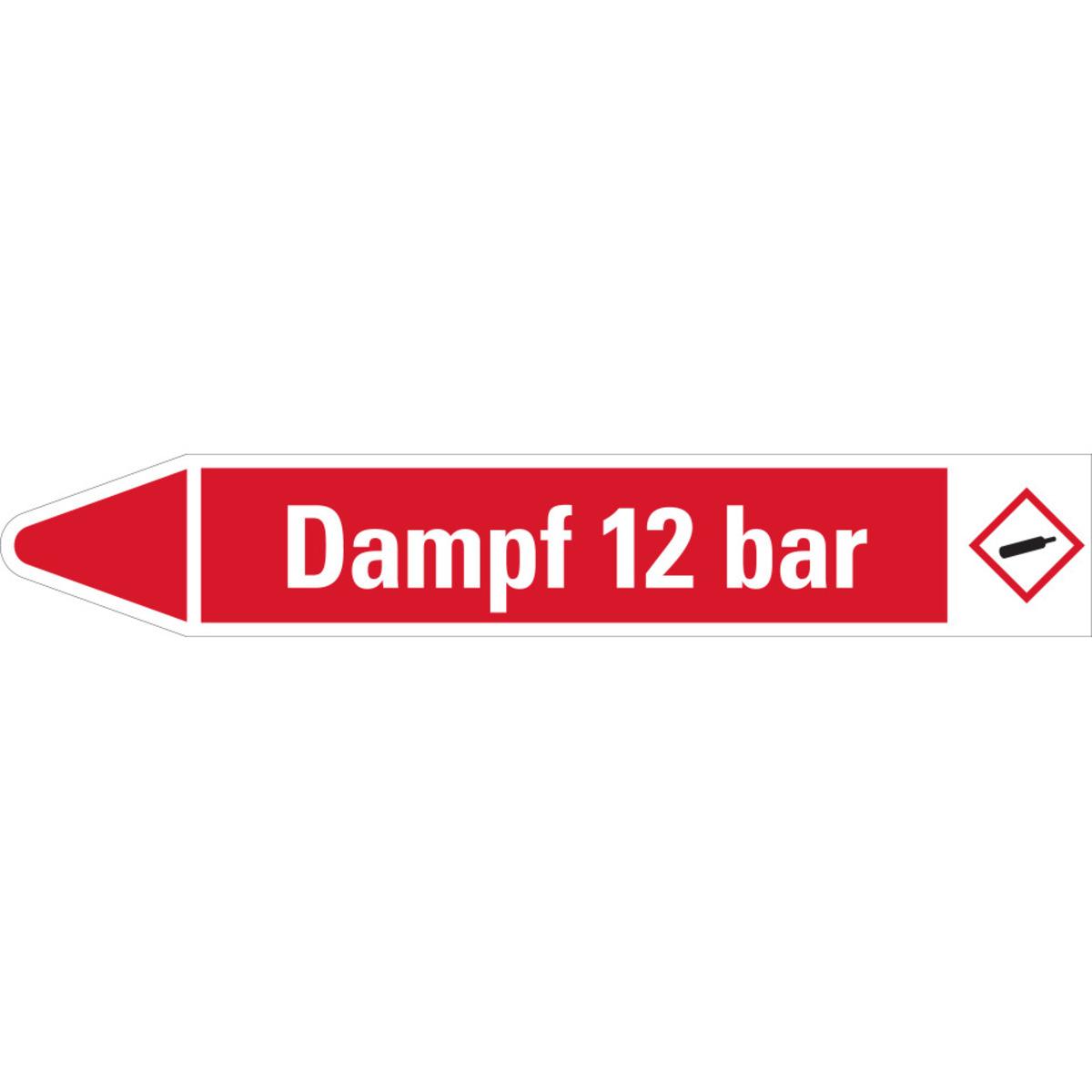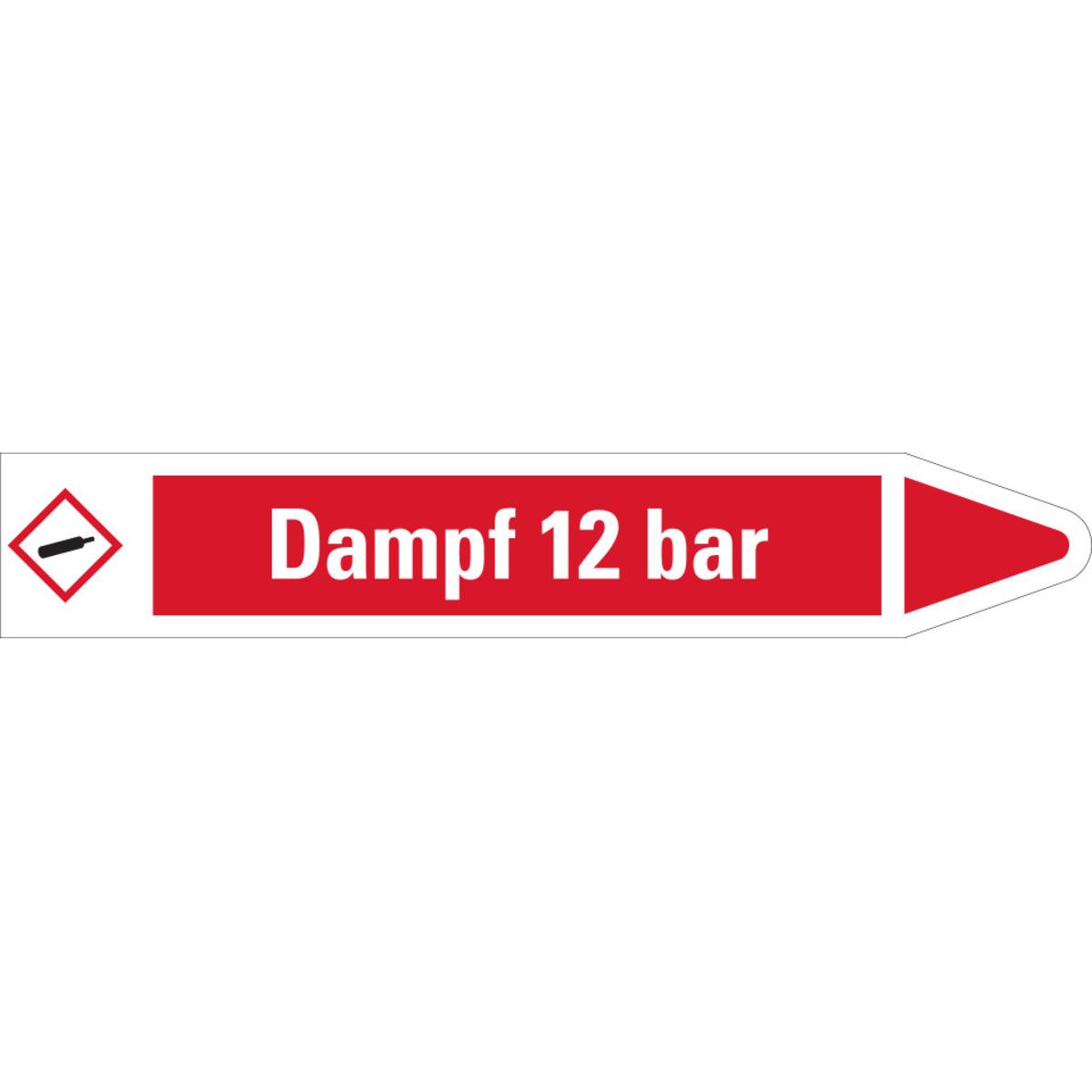 Auswahl: RKZ-Etikett Dampf 12 bar, rechts, rot/weiß, ab 90mm Ø, 440x100mm, 2/Bogen