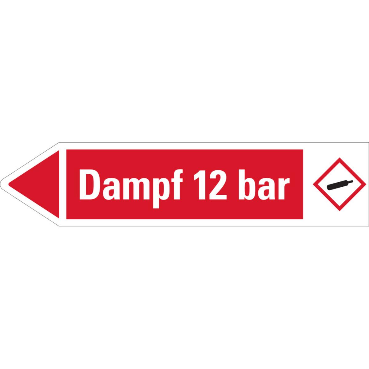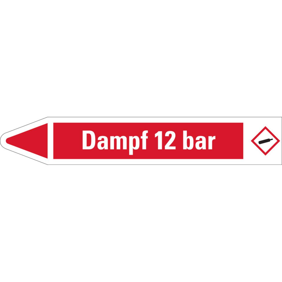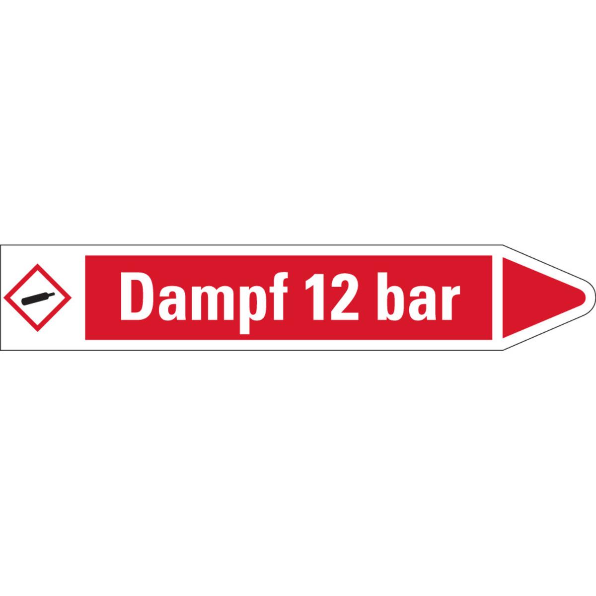 Auswahl: RKZ-Etikett Dampf 12 bar, rechts, rot/weiß, ab 90mm Ø, 440x100mm, 2/Bogen