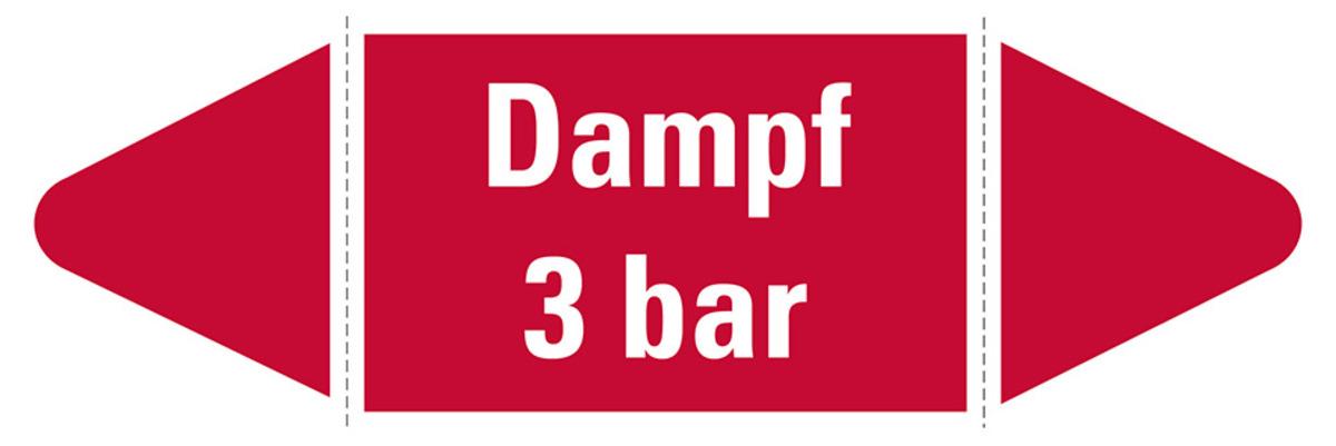 Auswahl: Rohrleitungsetikett Dampf 3 bar, rot/weiß, für Ø 60-90mm, 310x52mm, 3/Bogen