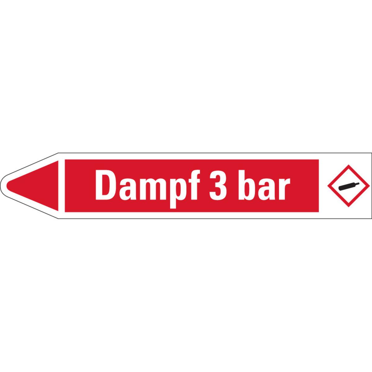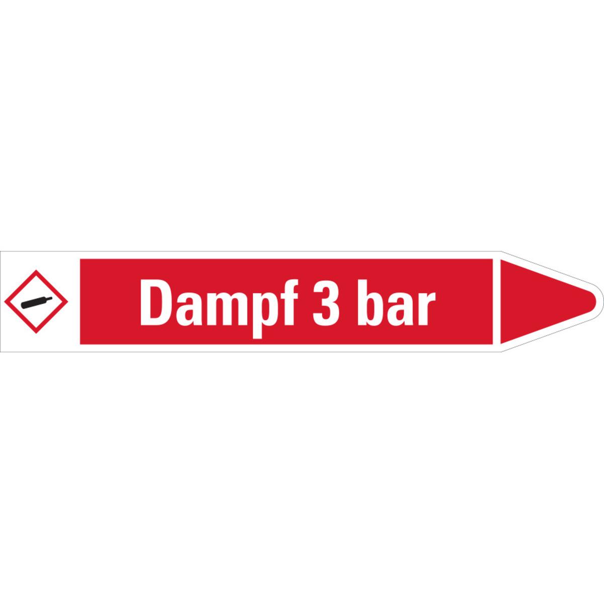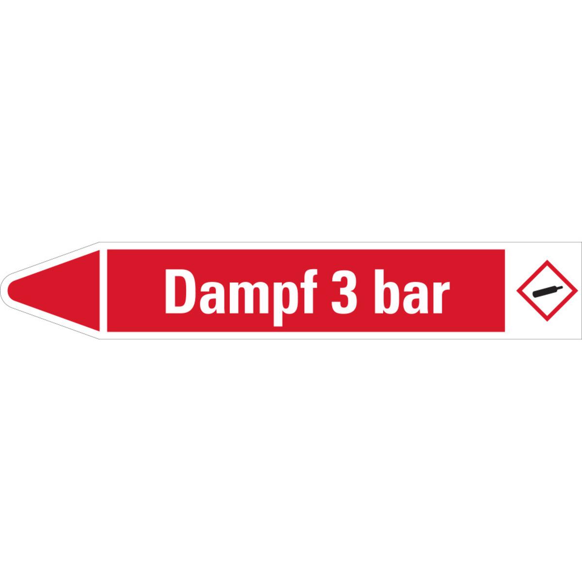 Auswahl: RKZ-Etikett Dampf 3 bar, links, rot/weiß, für Ø 40-60mm, 218x37mm, 5/Bogen
