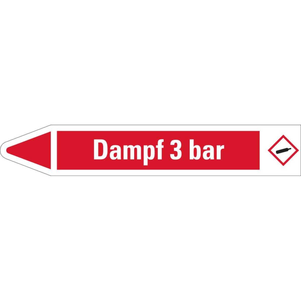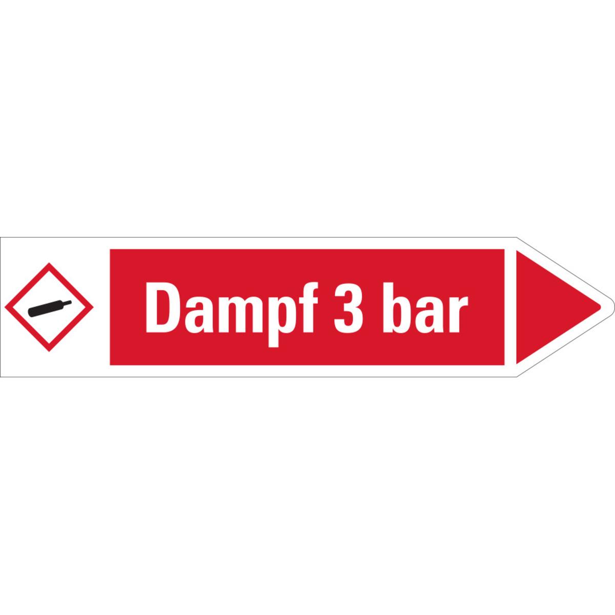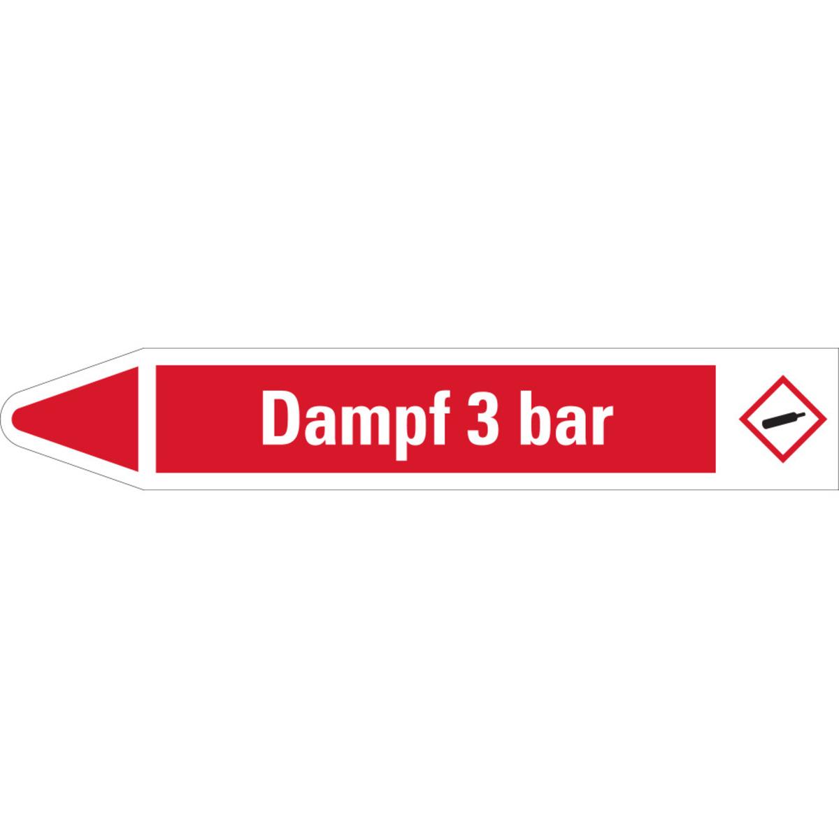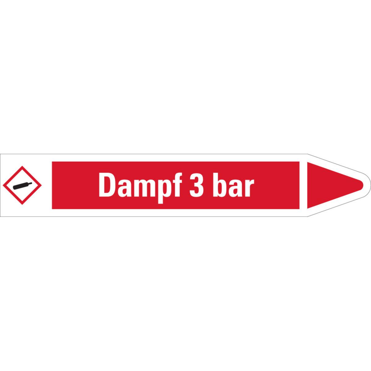 Auswahl: RKZ-Etikett Dampf 3 bar, links, rot/weiß, für Ø 40-60mm, 218x37mm, 5/Bogen