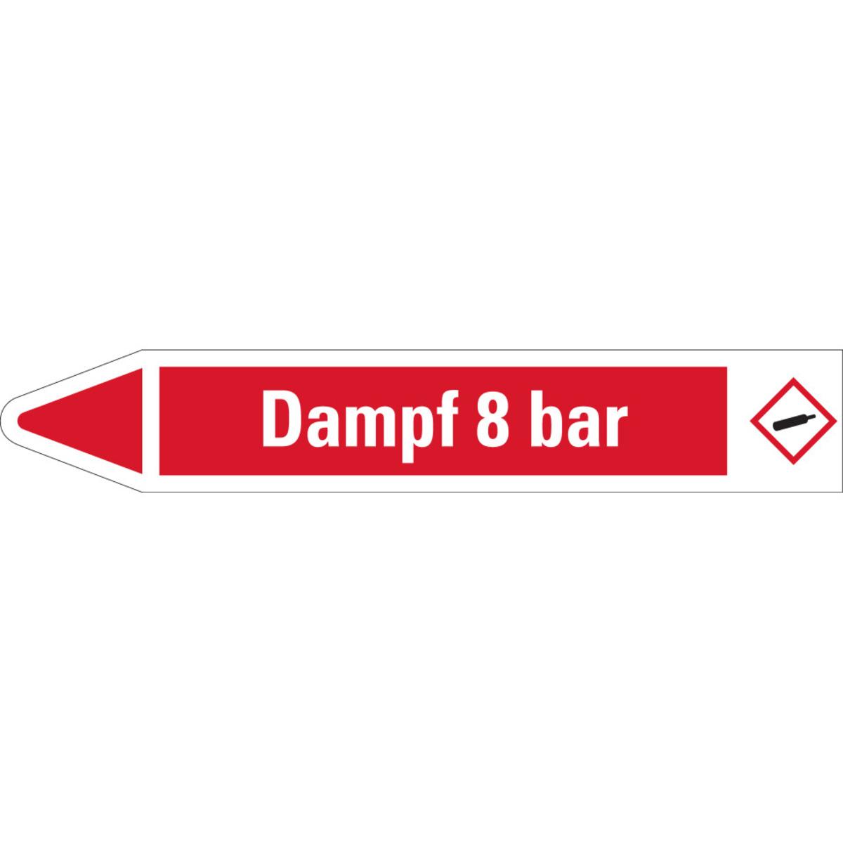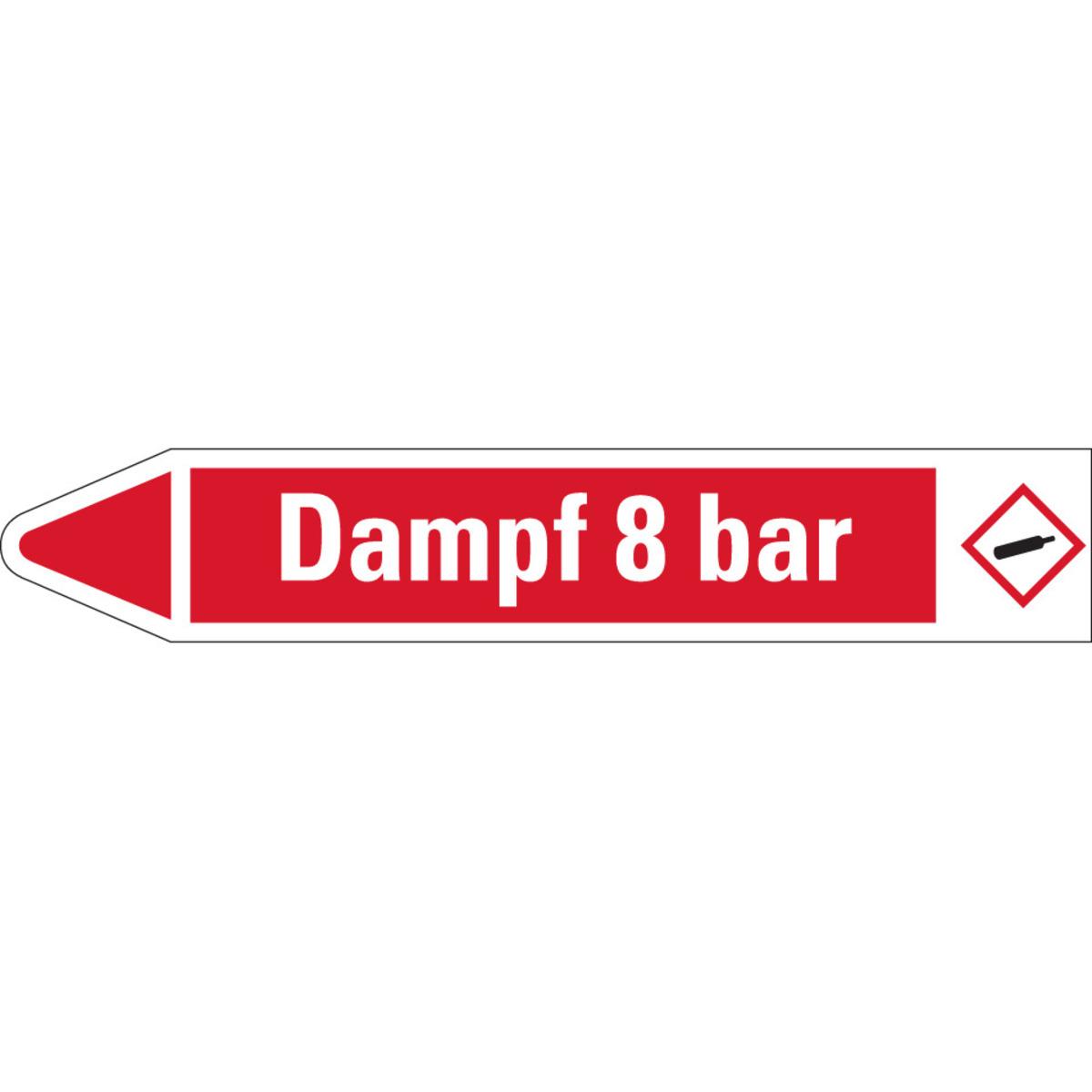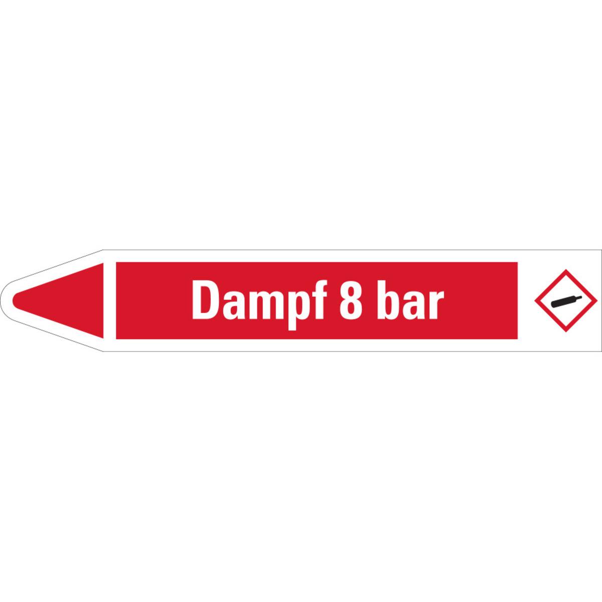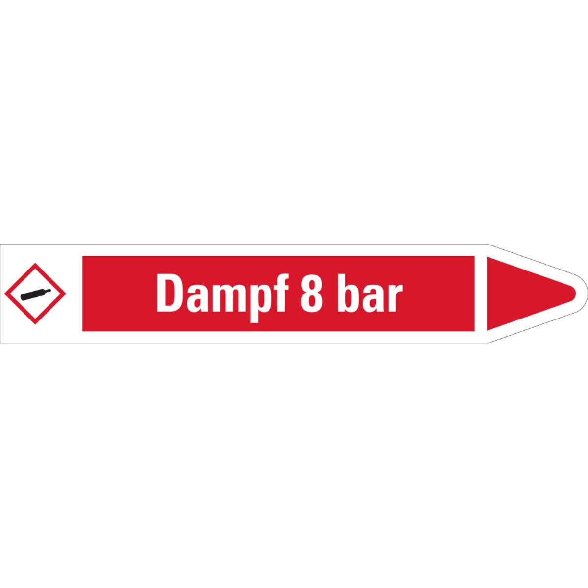 Auswahl: RKZ-Etikett Dampf 8 bar, rechts, rot/weiß, für Ø 25-40mm, 154x26mm, 5/Bogen