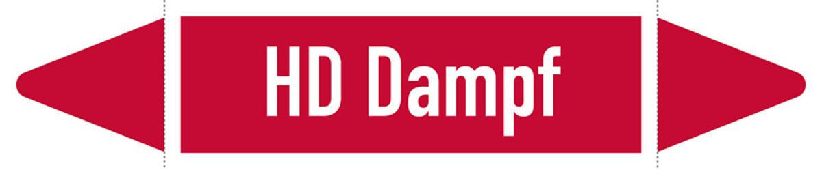 Auswahl: Rohrleitungsetikett HD Dampf, DIN 2403, rot/weiß, für Ø 25-40mm, 154x26mm, 5/Bogen
