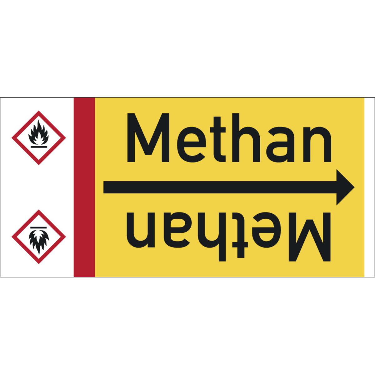 Mit dem Rohrleitungsband "Brennbare Gase" kennzeichnen Sie Durchflussstoff und Fließrichtung eindeutig und gut sichtbar. So sorgen Sie sowohl im täglichen Betrieb als auch im Ernstfall für mehr Sicherheit.