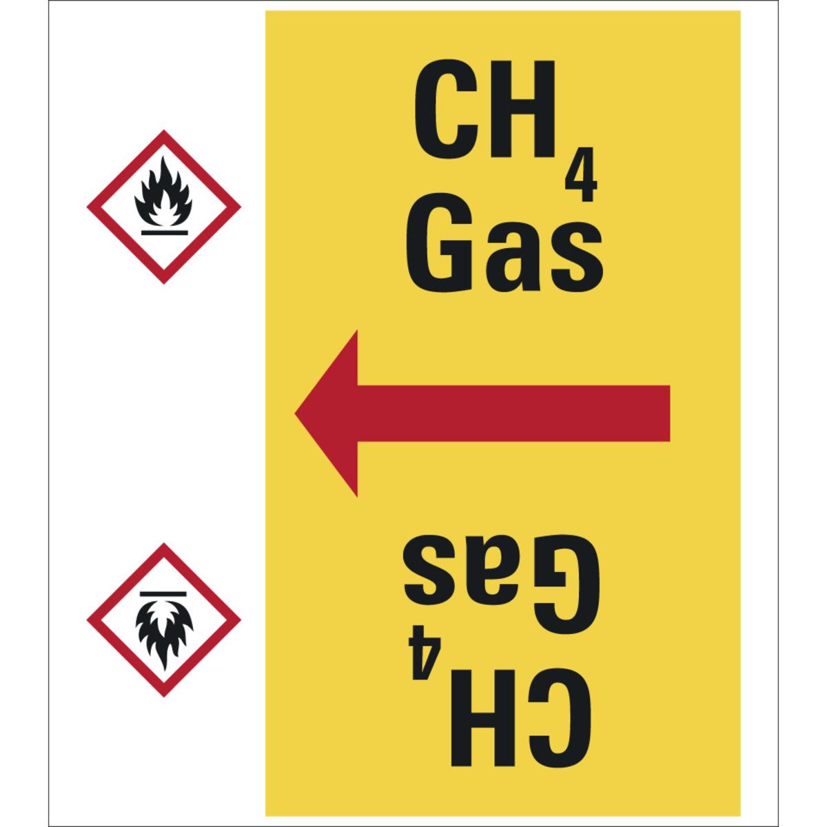 Auswahl: Rohrleitungsband Methan, praxisbewährt, ab Ø 50mm, gelb/schwarz, 33m/Rolle