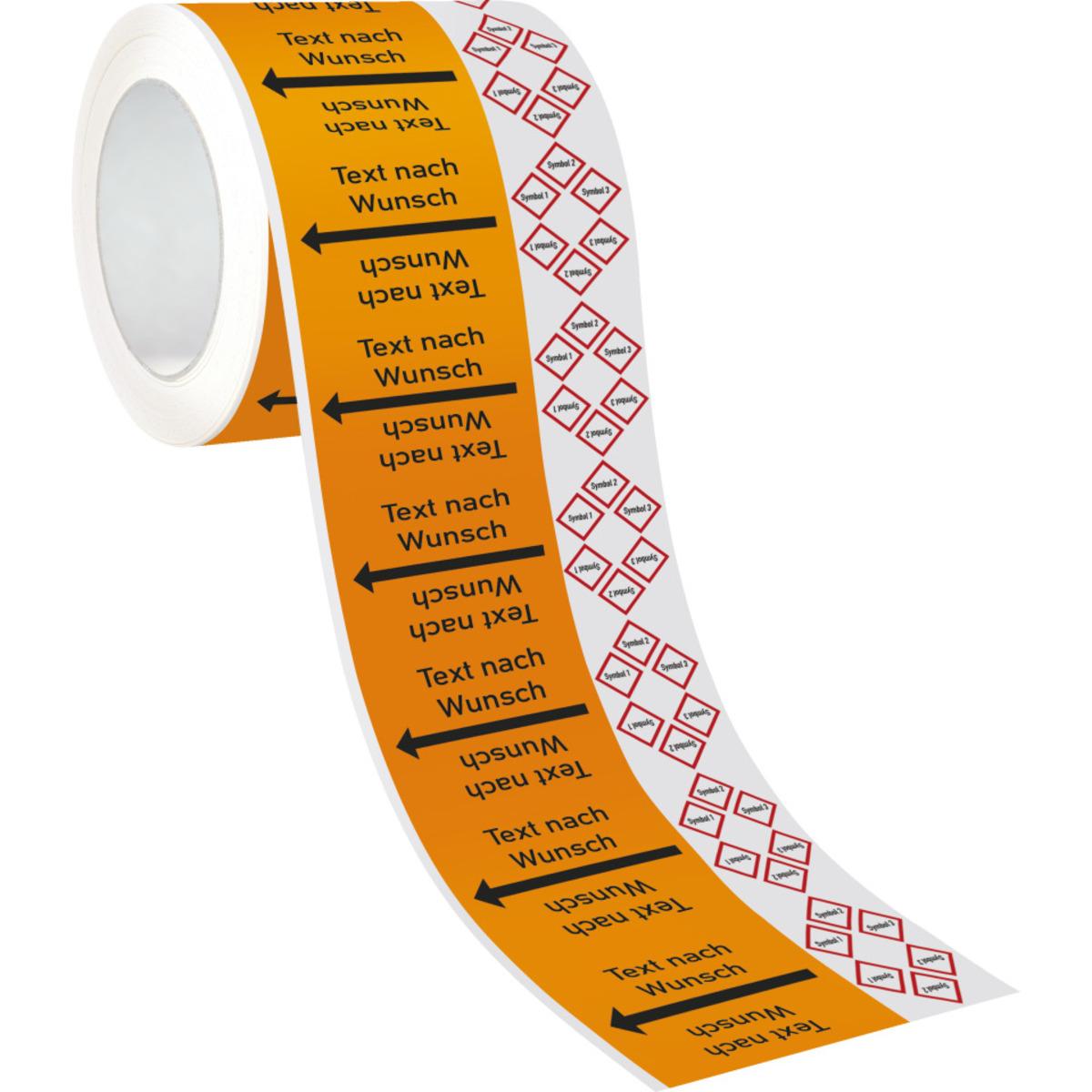 KSIGN Rohrleitungsband für Rohrdurchmesser ab: 15 mm Symbol nach Wunsch, Text nach Wunsch DIN 2403