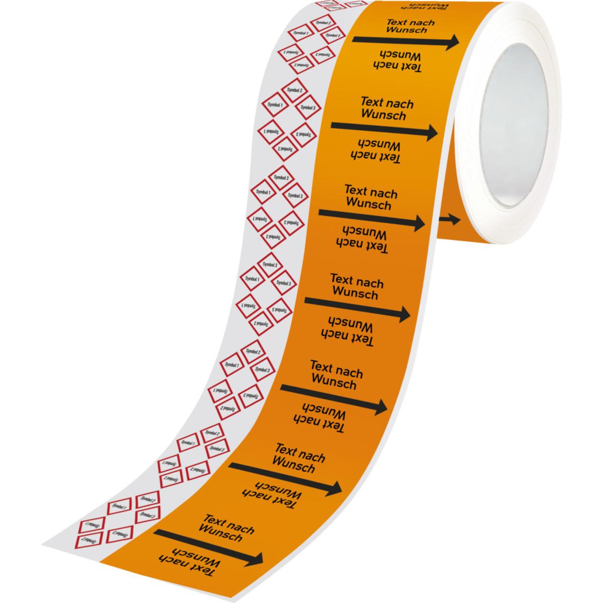 Auswahl: Rohrleitungsband, Wunschtext, bis 3 Symbole, Ausführ.1, DIN 2403, ab Ø 15mm, 33m/Rolle
