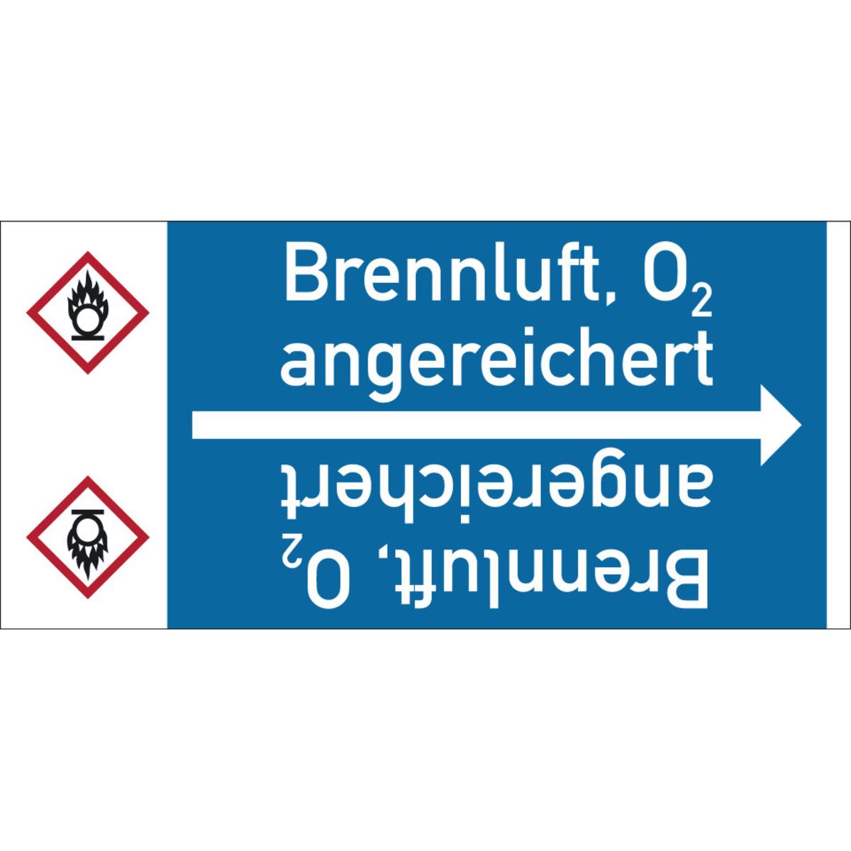 Auswahl: Rohrleitungsband Brennluft, O2 angereichert, DIN 2403, ab Ø 15mm, blau/weiß, 33m/RO