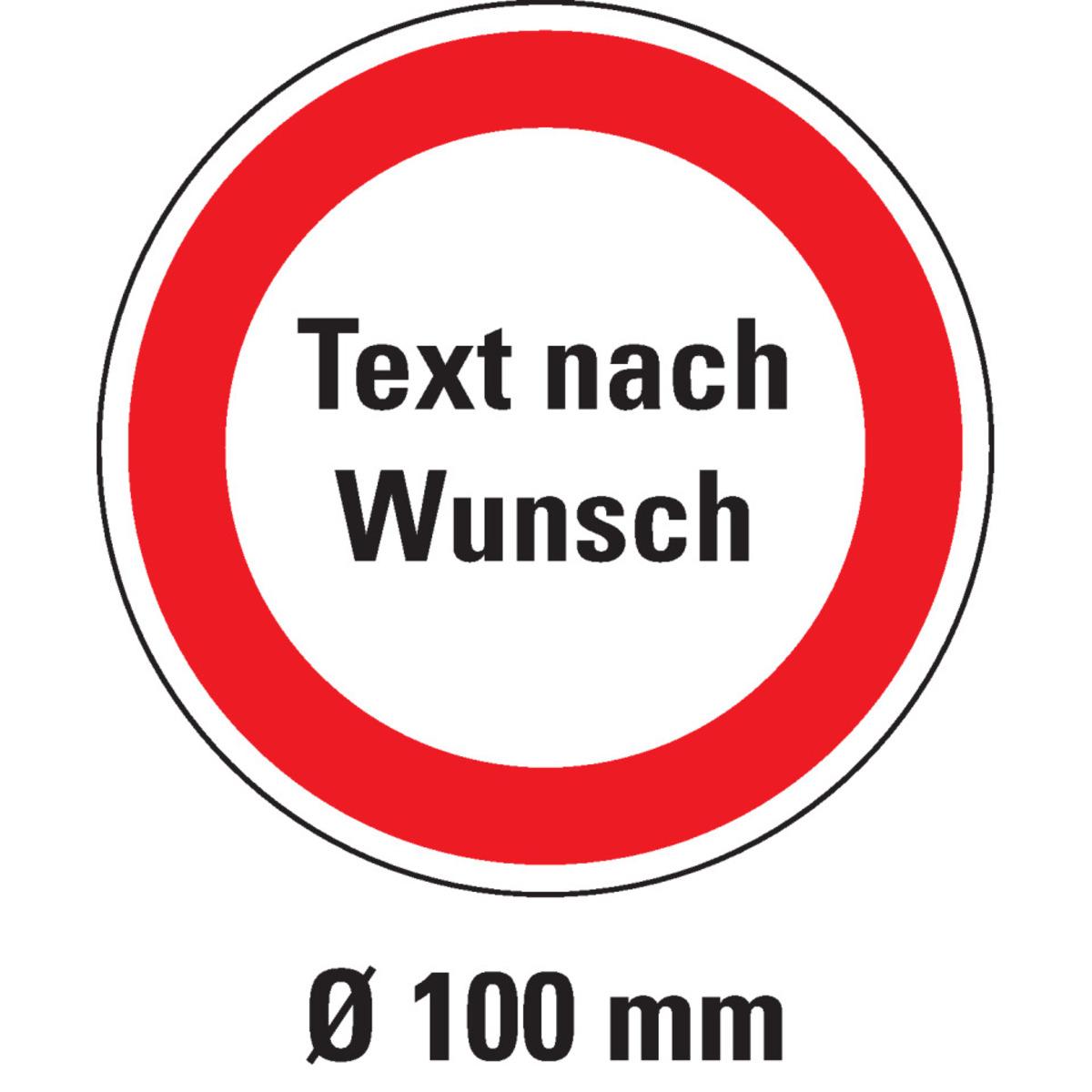 Auswahl: Verbotsschild, Text nach Wunsch, Kunststoff, Ø 100mm