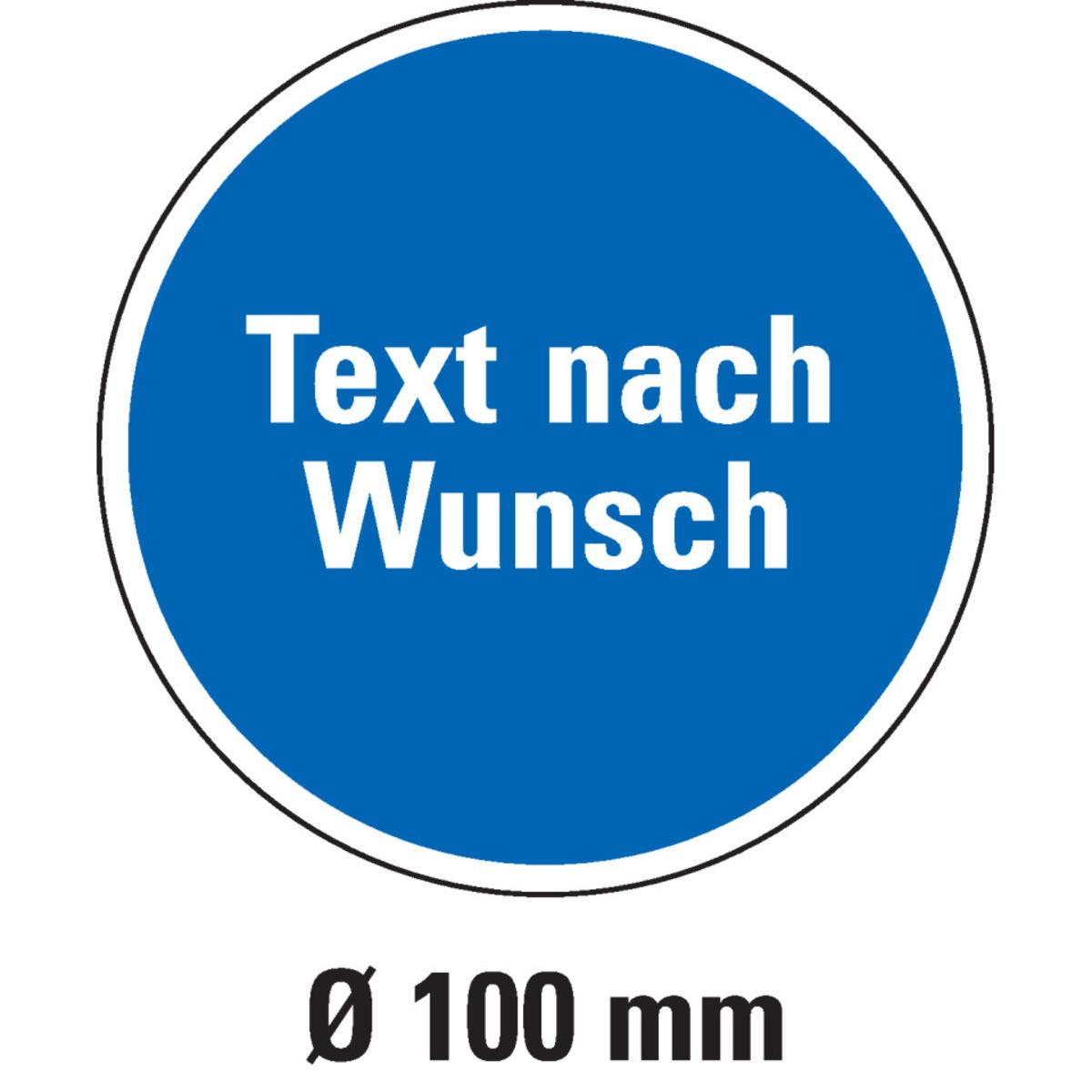 Auswahl: Gebotsschild, Text nach Wunsch, Folie, selbstklebend, Ø 100mm