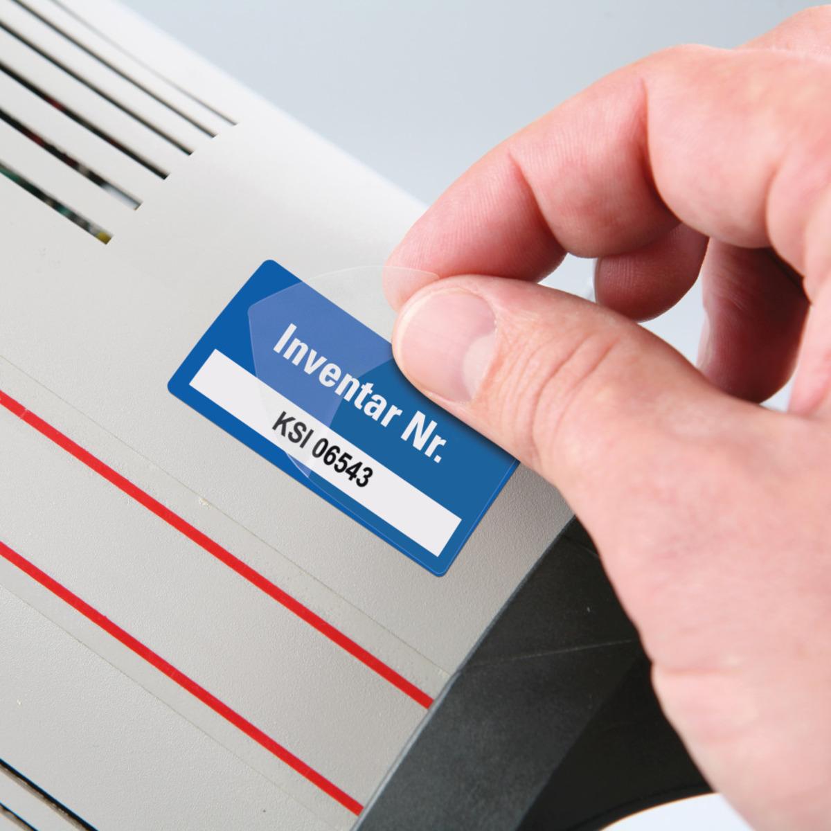 Schutzlaminat für Inventaretiketten zur Sicherung der Beschriftung vor äußeren Einflüssen wie Zerkratzen und Nässe.