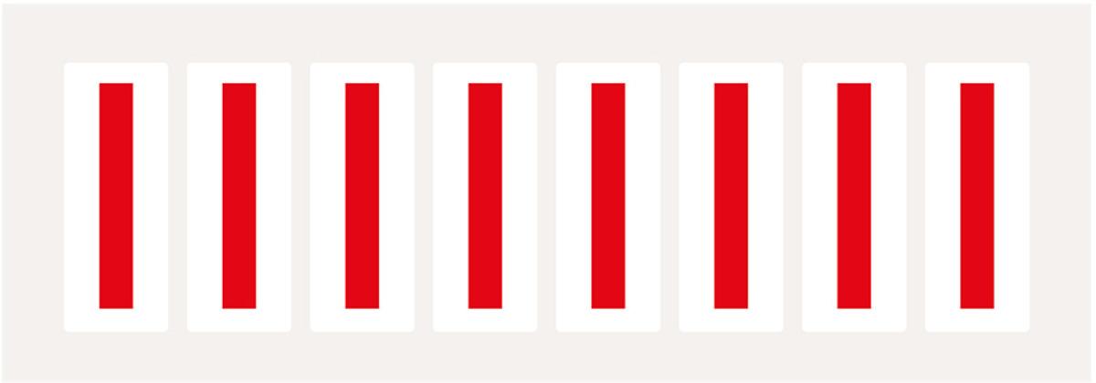 Selbstklebende Ziffern und Buchstaben zur freien Kennzeichnung von Gegenständen oder Orten wie Ordnern, Arbeitsmaterialien, Lagerplätzen, Regalen, Kisten, Geräten und Maschinen.