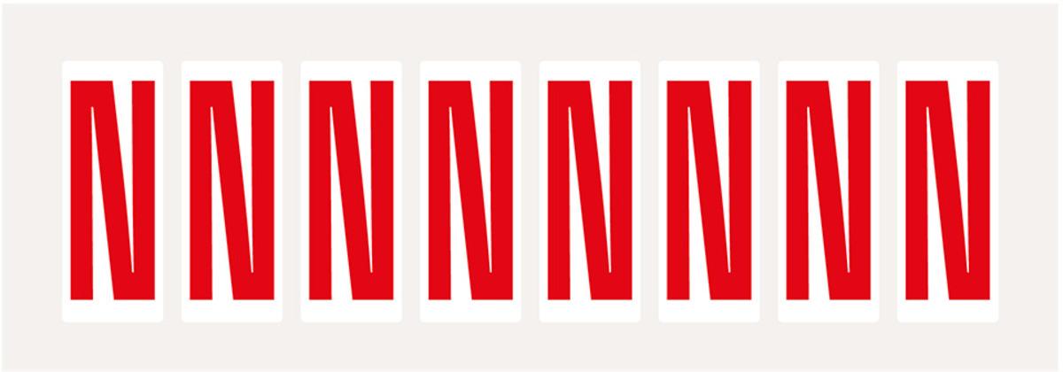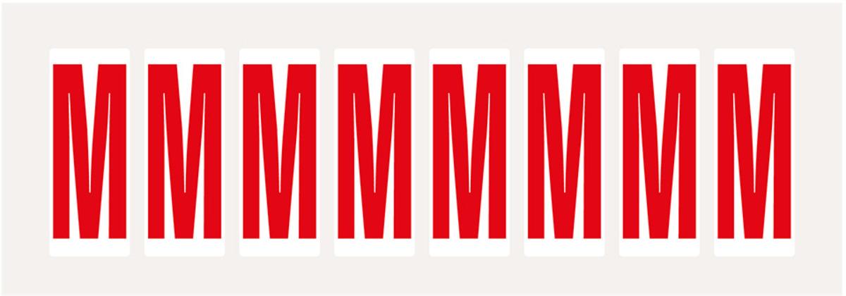 Auswahl: Buchstabe M, weiß/rot, Folie, Schrifthöhe 50mm, 22x57mm, 160 Stück/VE