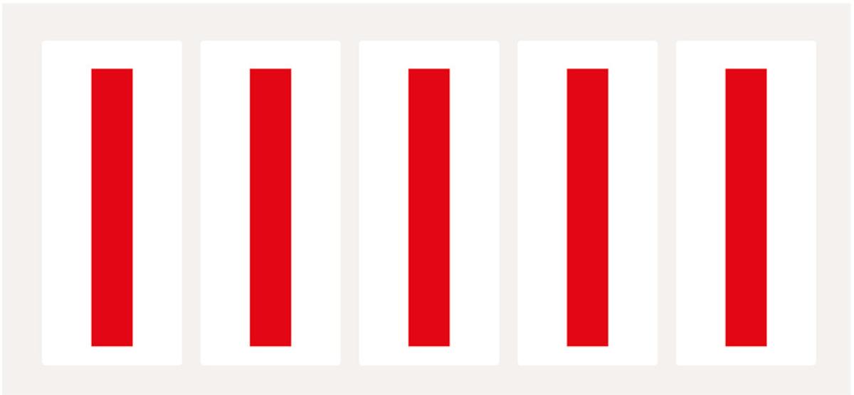Selbstklebende Ziffern und Buchstaben zur freien Kennzeichnung von Gegenständen oder Orten wie Ordnern, Arbeitsmaterialien, Lagerplätzen, Regalen, Kisten, Geräten und Maschinen.