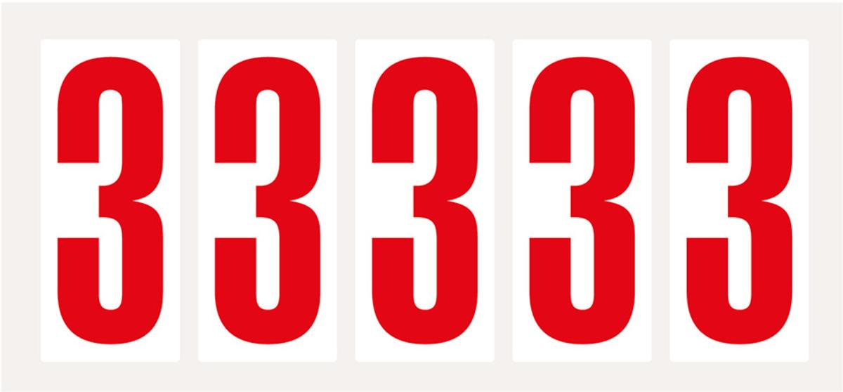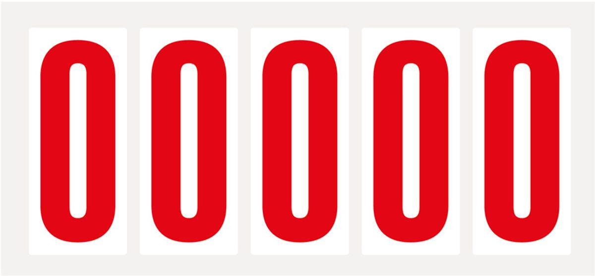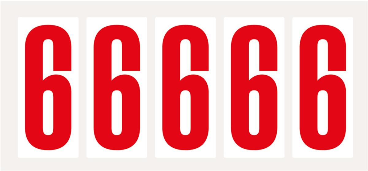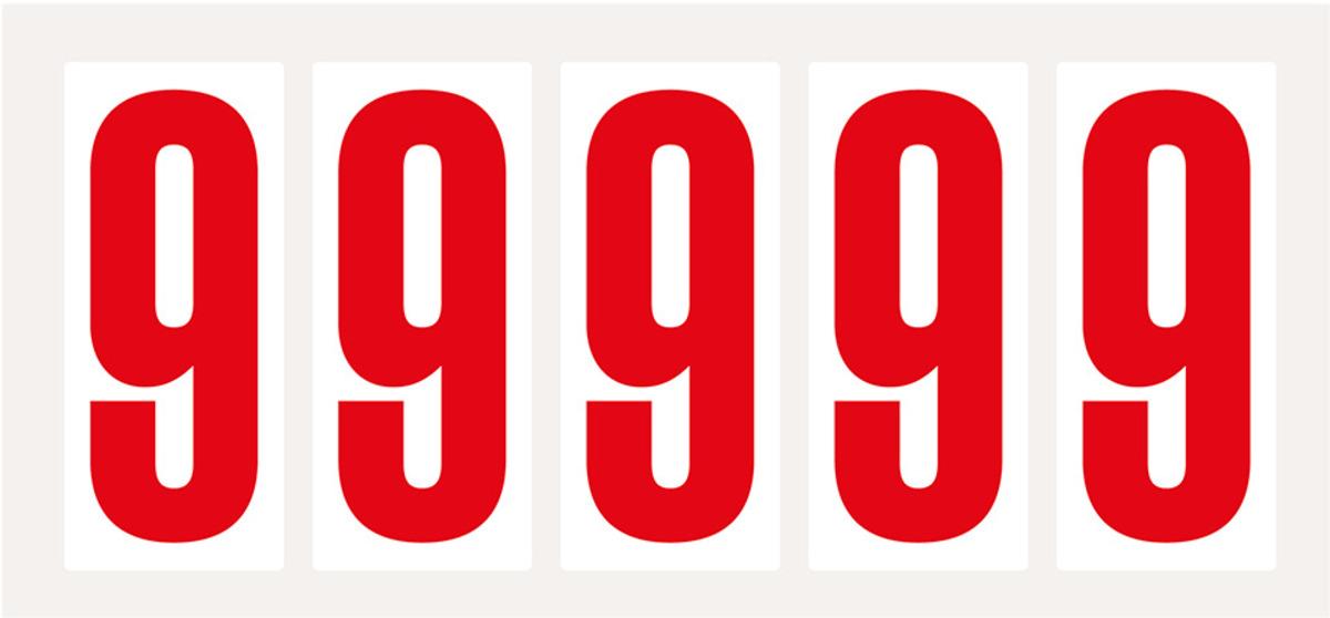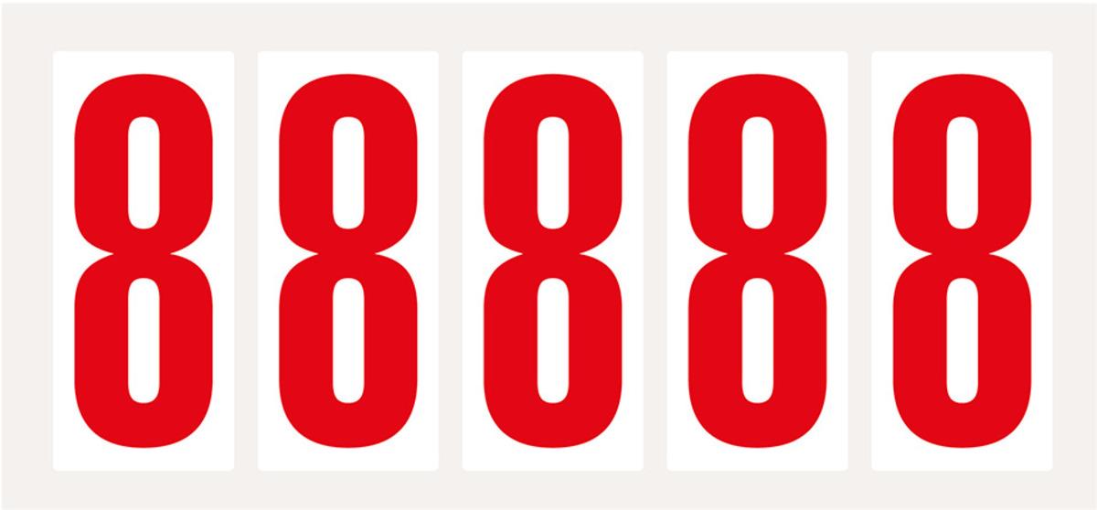 Auswahl: Ziffer 8, weiß/rot, Folie, Schrifthöhe 75mm, 38x88mm, 100 Stück/VE