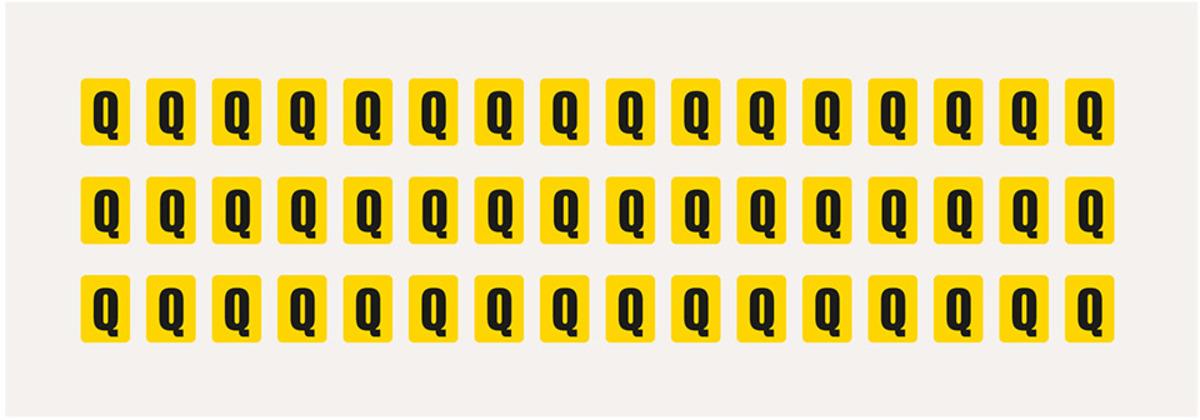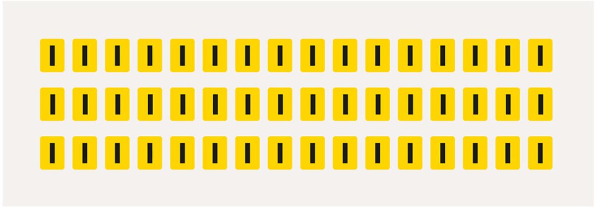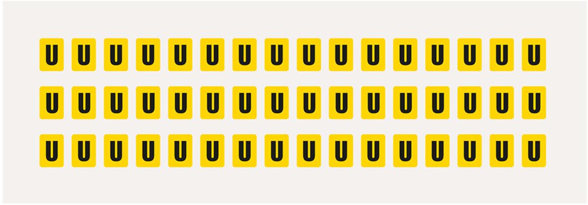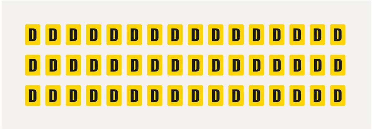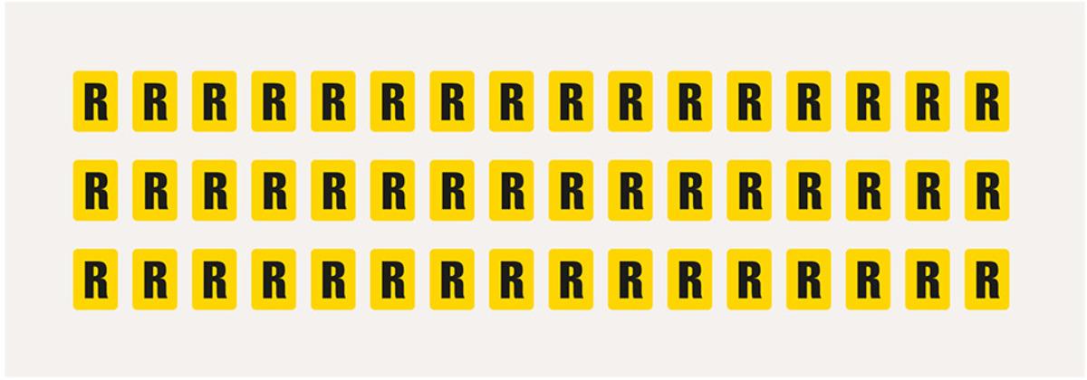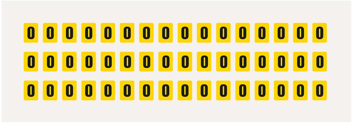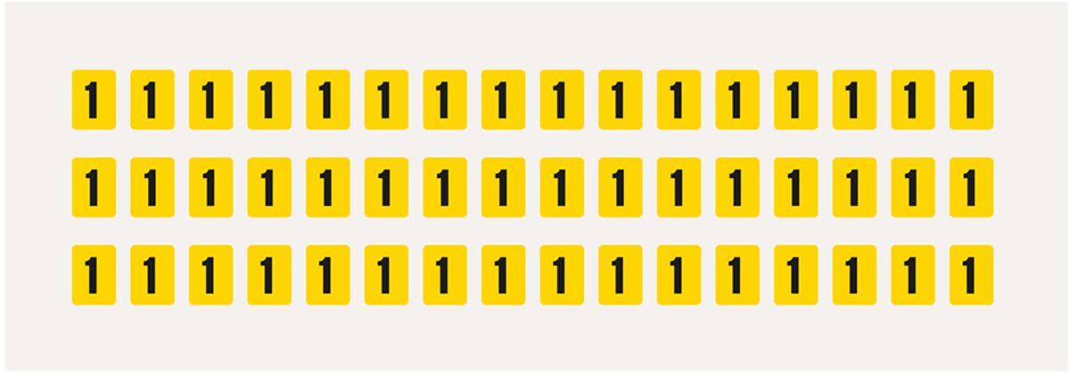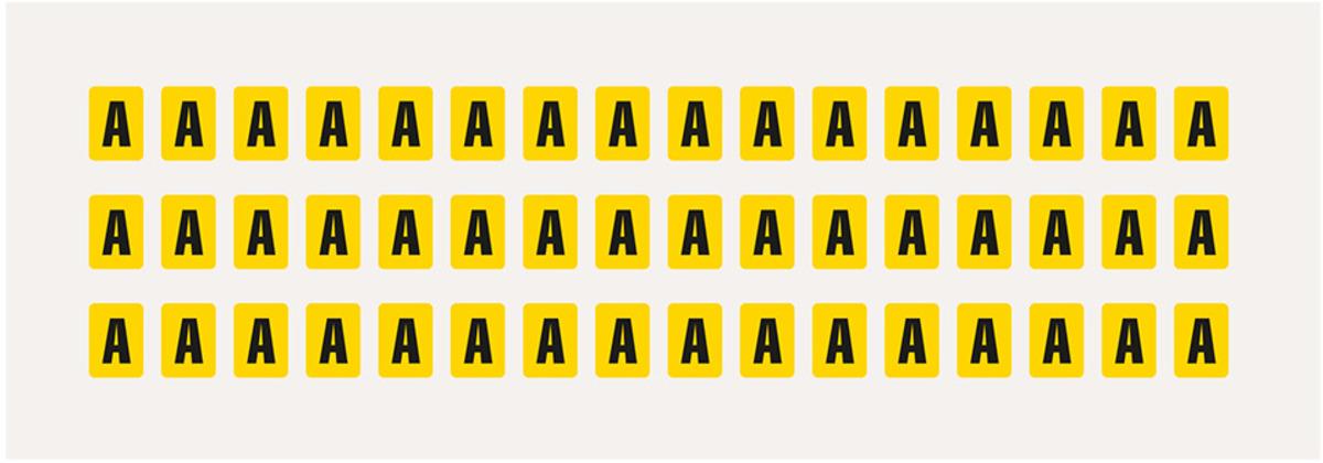 Selbstklebende Ziffern und Buchstaben zur freien Kennzeichnung von Gegenständen oder Orten wie Ordnern, Arbeitsmaterialien, Lagerplätzen, Regalen, Kisten, Geräten und Maschinen.