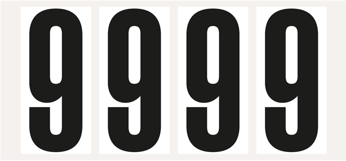 Auswahl: Ziffer 9, weiß/schwarz, Folie, Schrifthöhe 95mm, 47x98mm, 80 Stück/VE