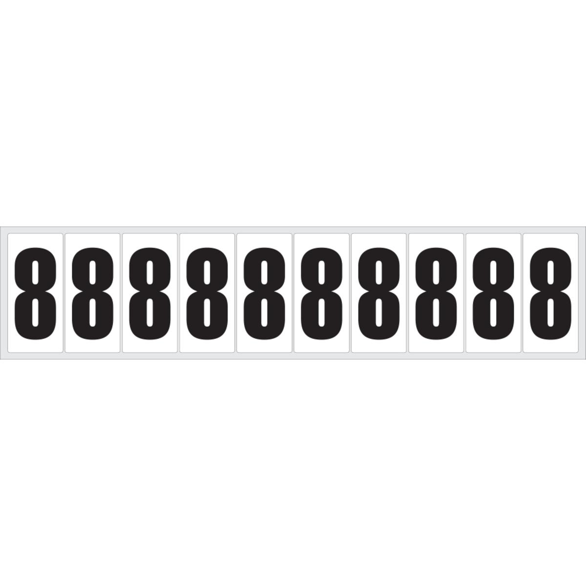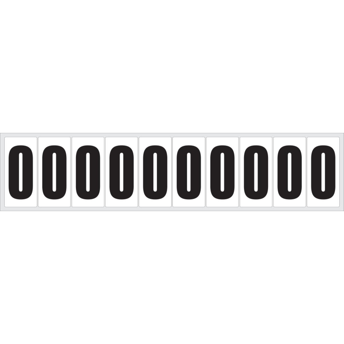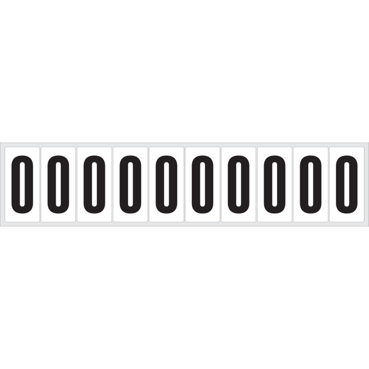 Auswahl: Selbstklebende Ziffer 0, weiß/schwarz, Folie, Schrifthöhe40mm, 52, 9x23, 8mm, 20 Bogen/VE, 10/BOG
