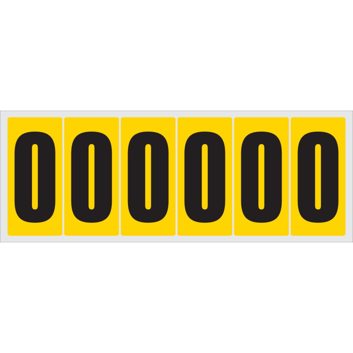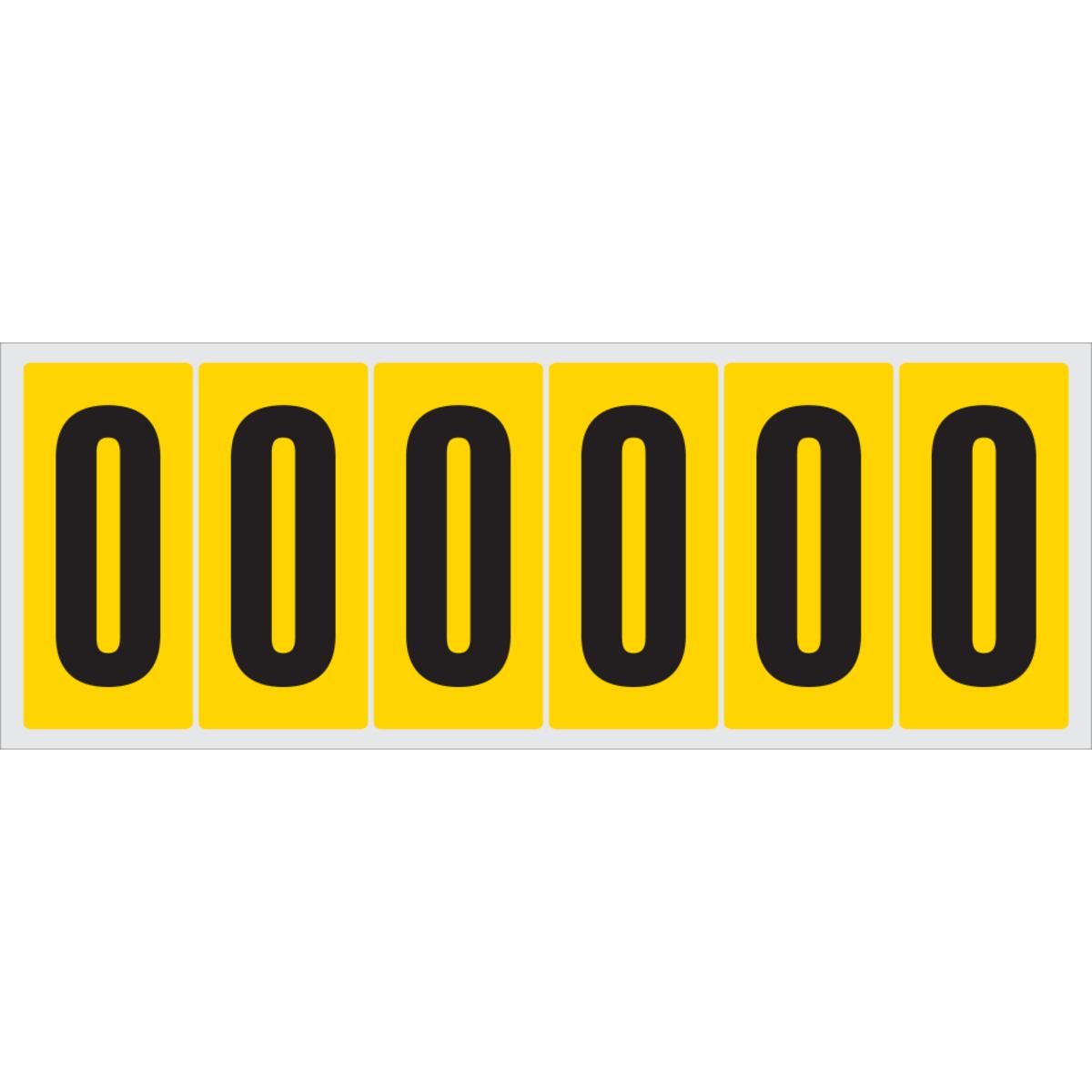 Auswahl: Selbstklebende Ziffer 0, gelb/schwarz, Folie, Schrifthöhe60mm, 78x35, 7mm, 20Bogen/VE, 6/Bogen