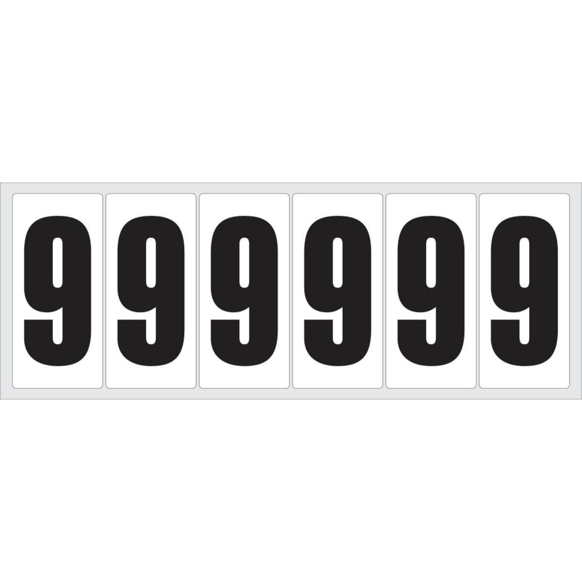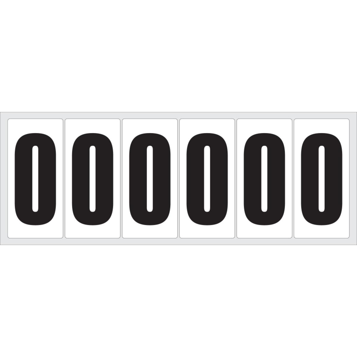 Auswahl: Selbstklebende Ziffer 0, weiß/schwarz, Folie, Schrifthöhe60mm, 78x35, 7mm, 20Bogen/VE, 6/Bogen