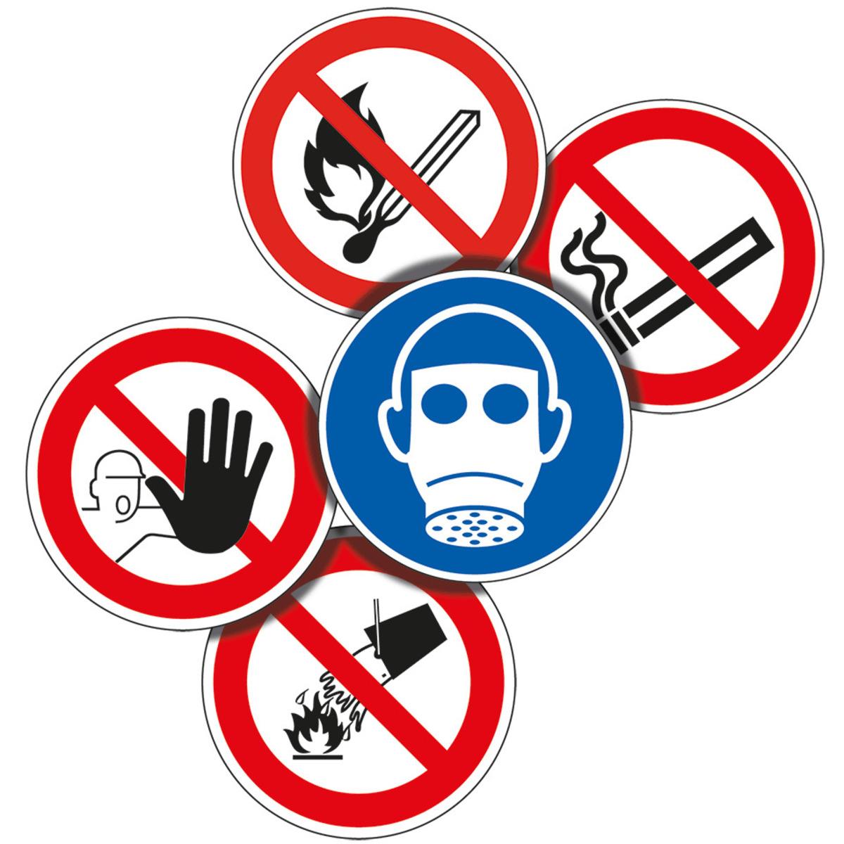 Auswahl: Sicherheitskennzeichen-Set, ASR/ISO, für Gefahrstofflager, Folie, Ø 200mm, 5/VE
