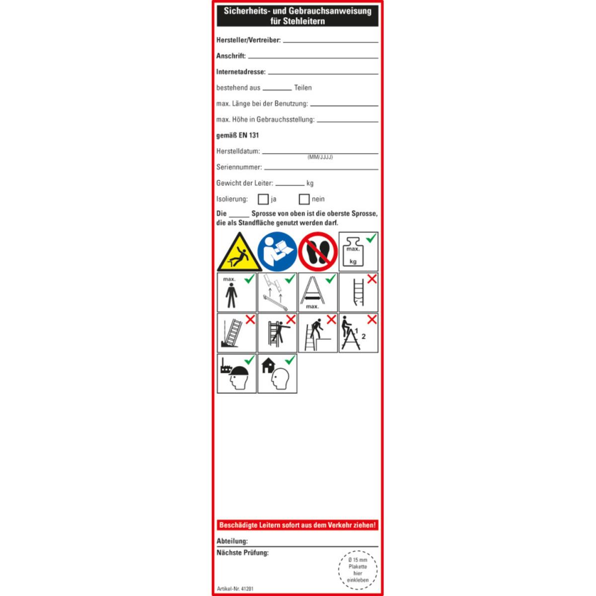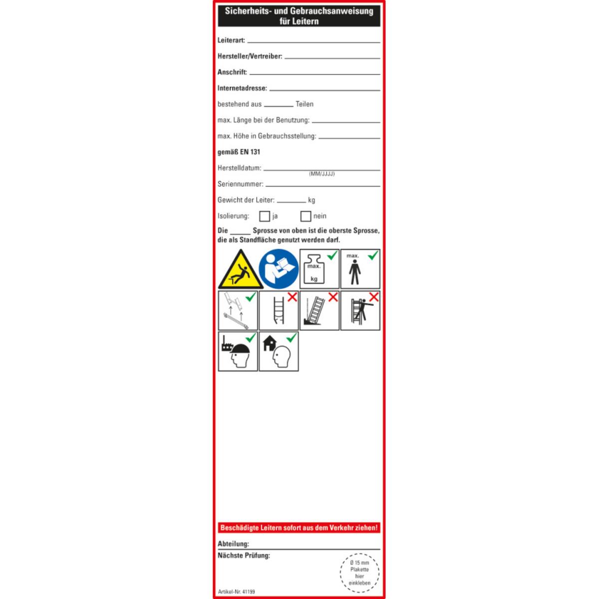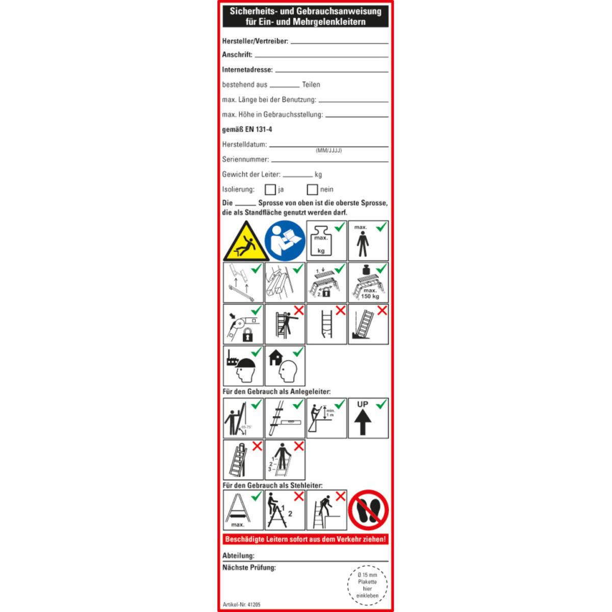 Auswahl: Aufkleber Leiter-Gebrauchsanweisung Allgemein, Folie, ablösbar, 65x225mm, 2/Bogen