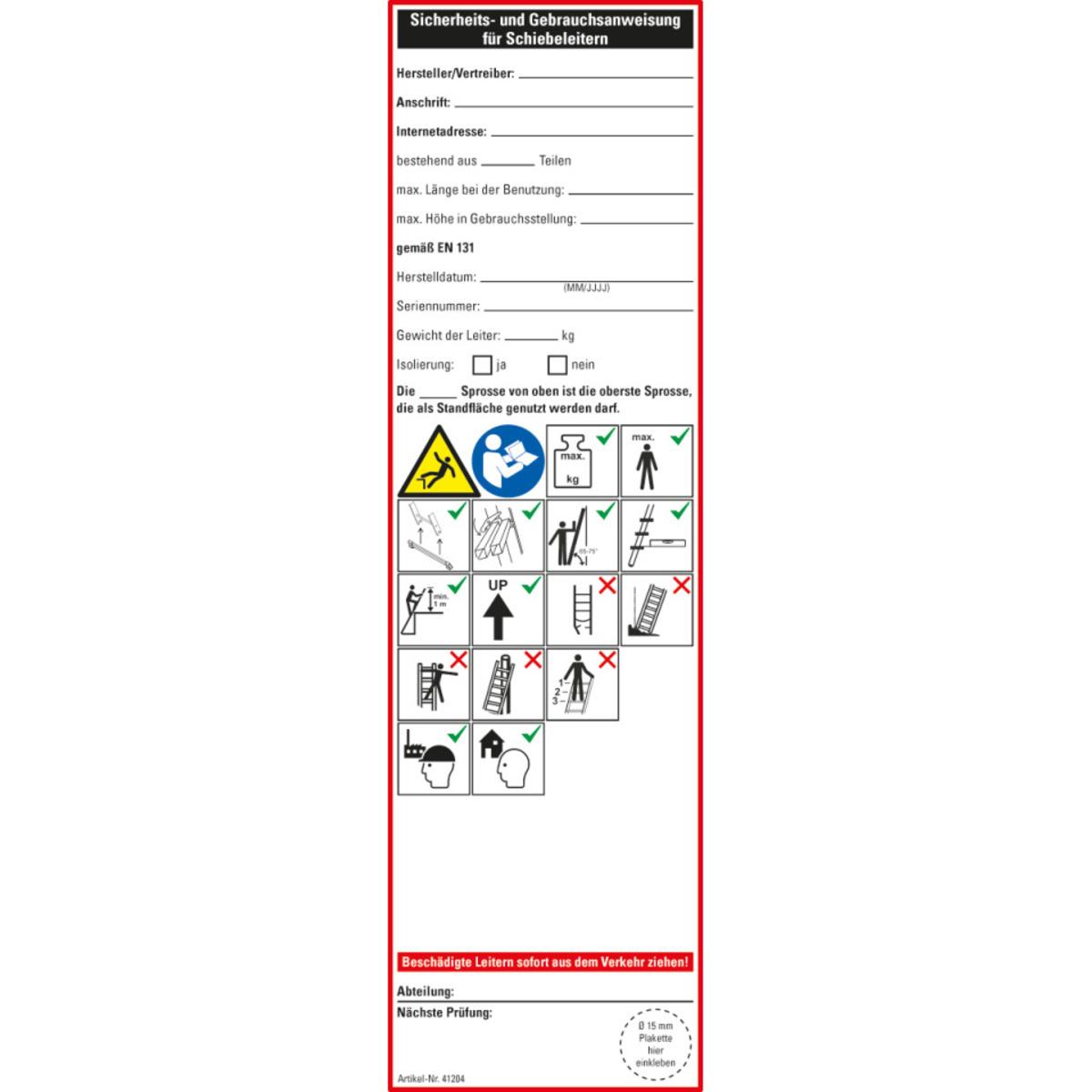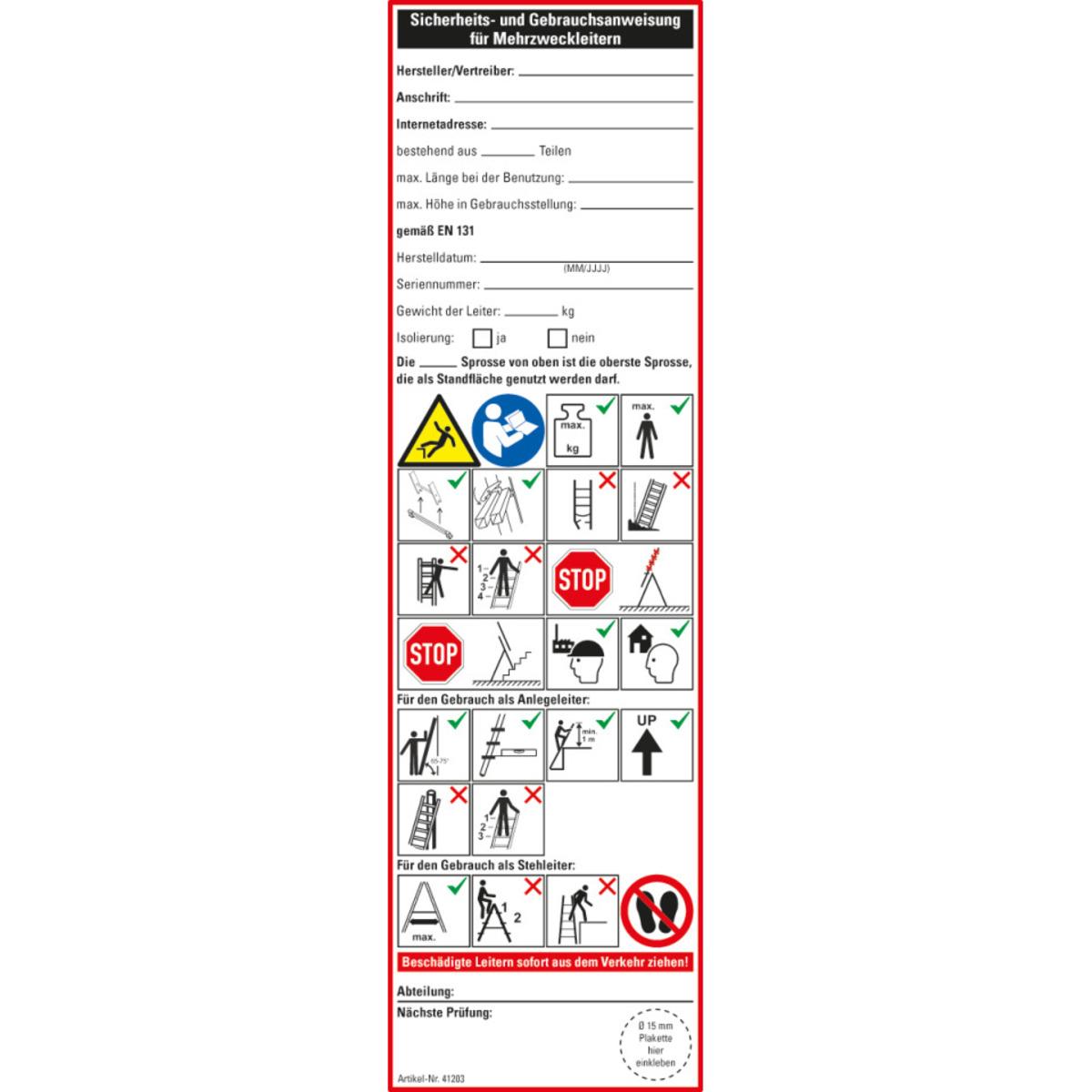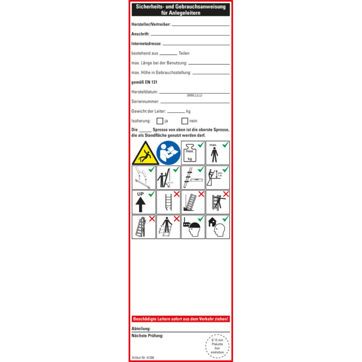 Auswahl: Aufkleber Leiter-Gebrauchsanweisung Allgemein, Folie, ablösbar, 65x225mm, 2/Bogen