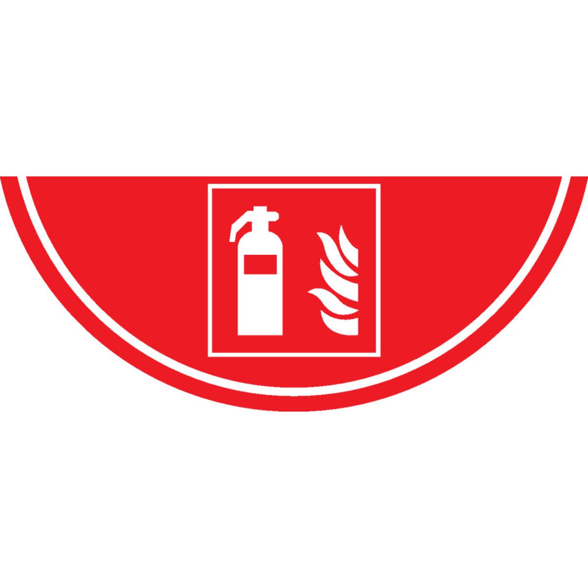 Rutschhemmende Bodenmarkierung zur auffälligen Kennzeichnung eines Feuerlöschers.