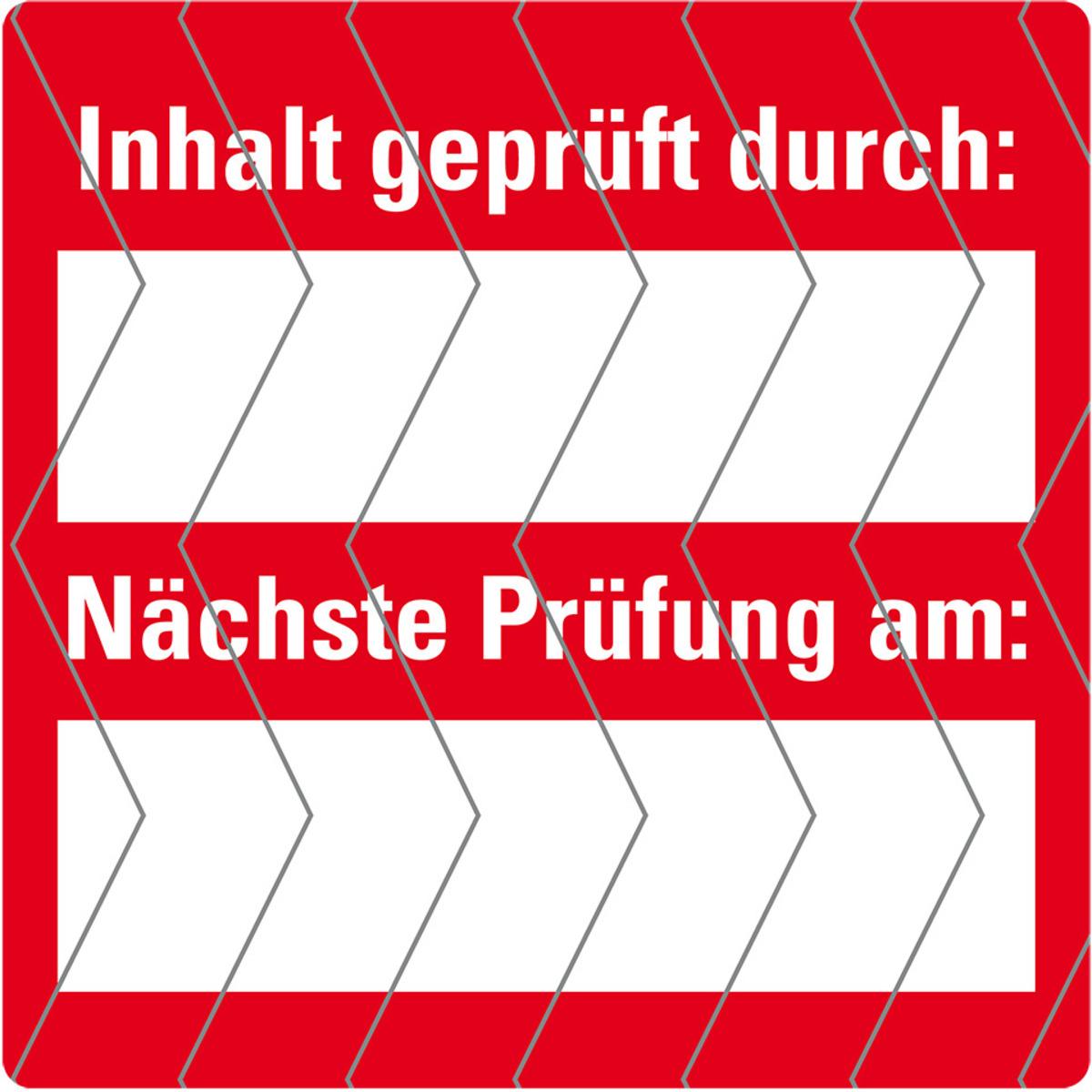 Das Sicherheitssiegel macht sofort erkennbar, wer den Inhalt gepüft hat und wann die nächste Prüfung stattfinden muss. Durch die Sicherheitsstanzung wird Manipulation oder Benutzung sofort sichtbar. Besonders gut geeignet für Feuerlösch-, Erste-Hilfe- und Werkzeugschränke.